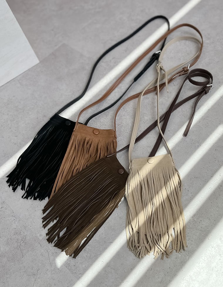 コンパクトながらも、秋冬のコーディネートをクラスアップしてくれるフリンジポシェットです。