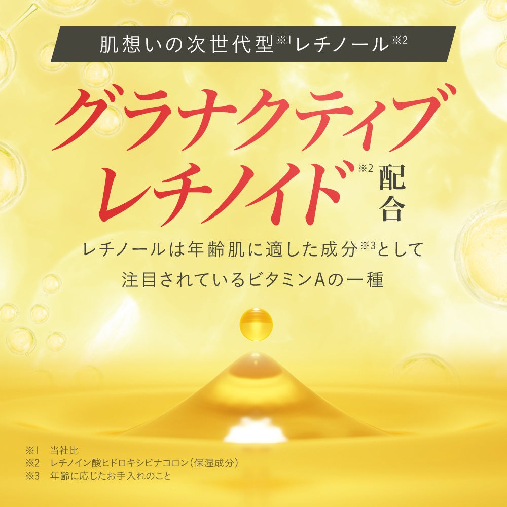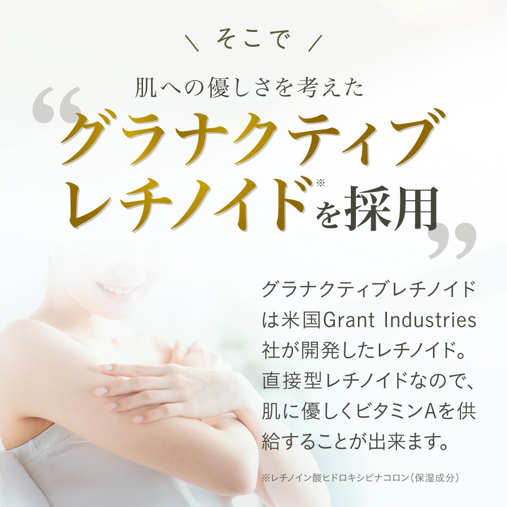 KIWAMI RTボディクリームは、肌想いの次世代※1レチノール※2「グラナクティブレチノイド※2」を配合した保湿クリームです。うるおいを与えて、なめらかでツヤのある肌に整えます。レチノールは年齢肌に適した成分※3として注目されているビタミンAの一種で、グラナクティブレチノイドは米国Grant Industries社が開発したレチノイドです。