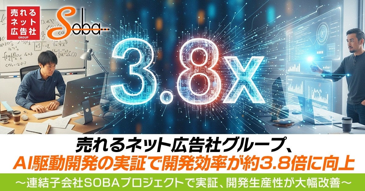 売れるネット広告社グループ、AI駆動開発の実証で開発効率が約3.8倍に向上~連結子会社SOBAプロジェクトで実証、開発生産性が大幅改善~