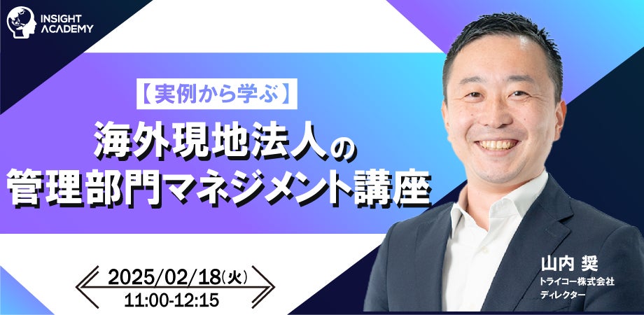グローバル⼈材育成・研修業を⼿掛けるインサイトアカデミー株式会社(本社:東京都港区新橋、代表:金 珍燮)は、無料webセミナー「【実例から学ぶ】海外現地法人の管理部門マネジメント講座」を2025年2月18日(火)11:00より開催します。