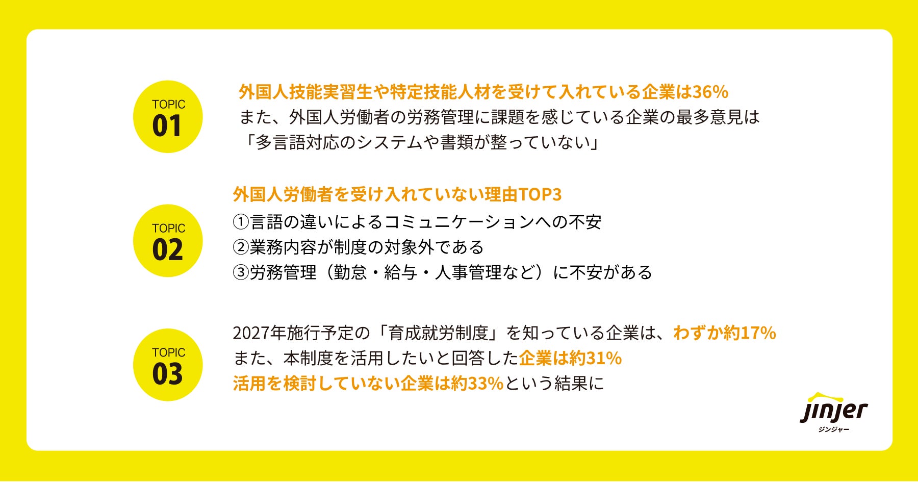 ▶調査結果の詳細:https://hcm-jinjer.com/blog/dx/foreigner_labor_survey/