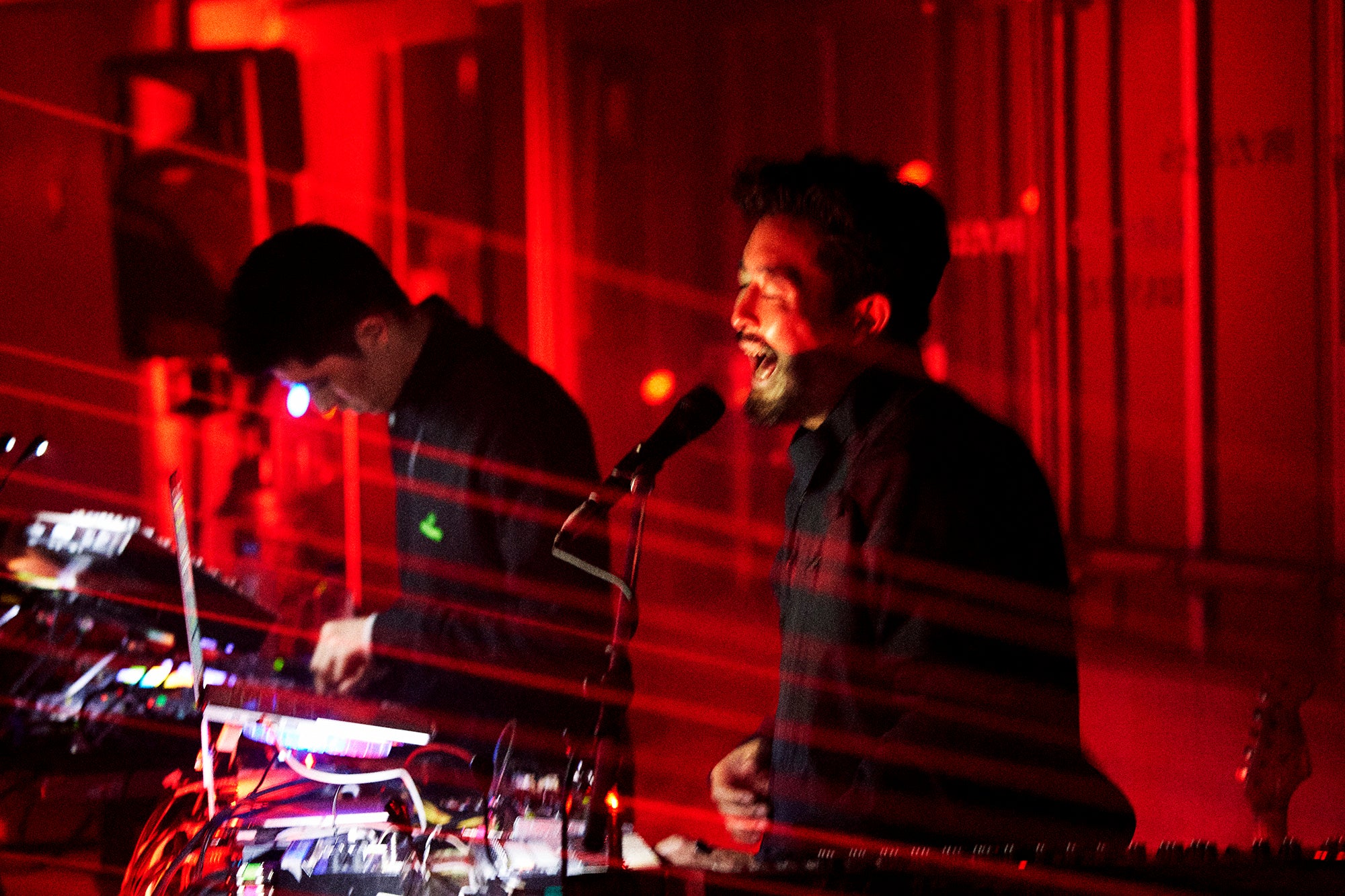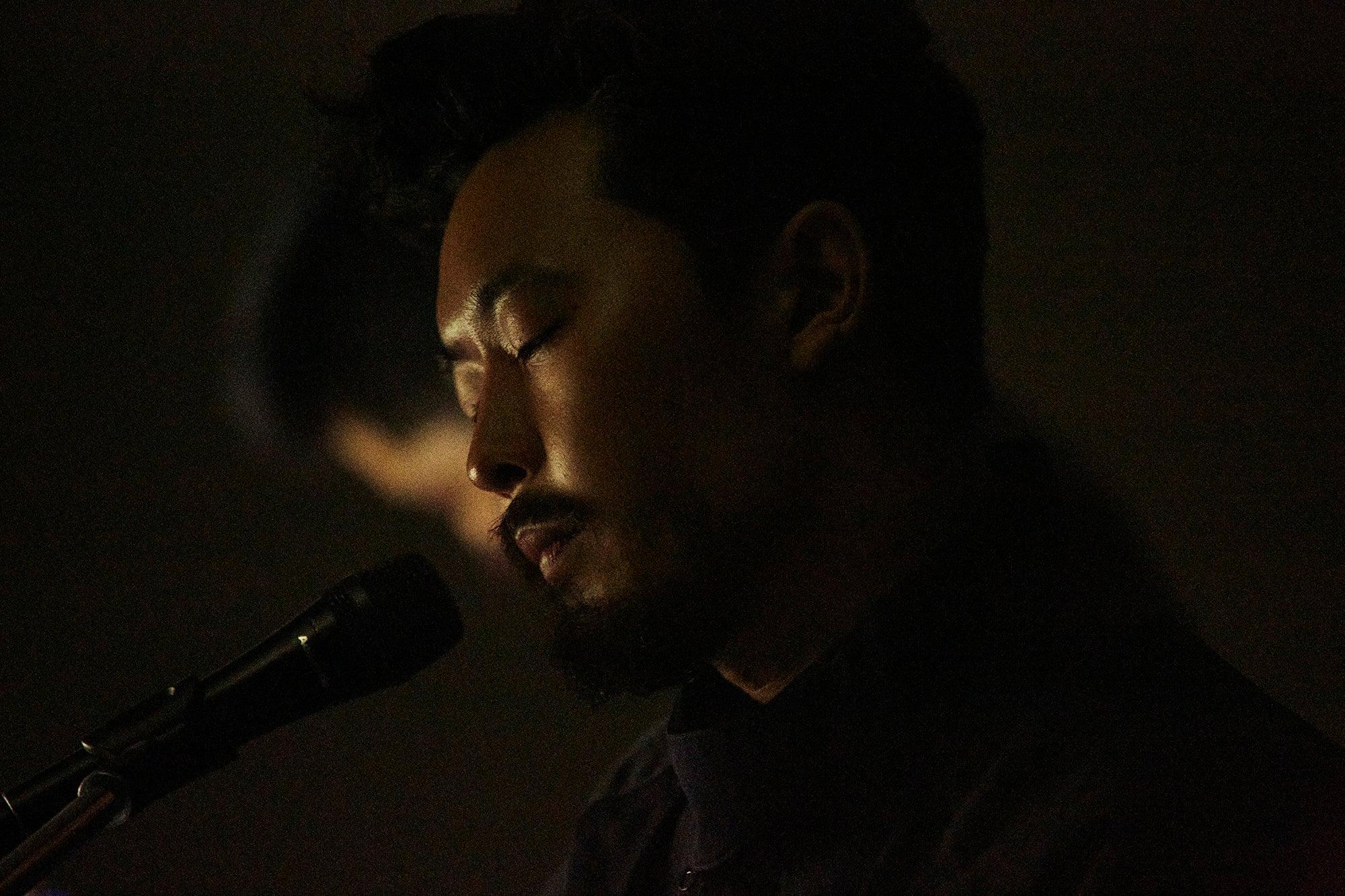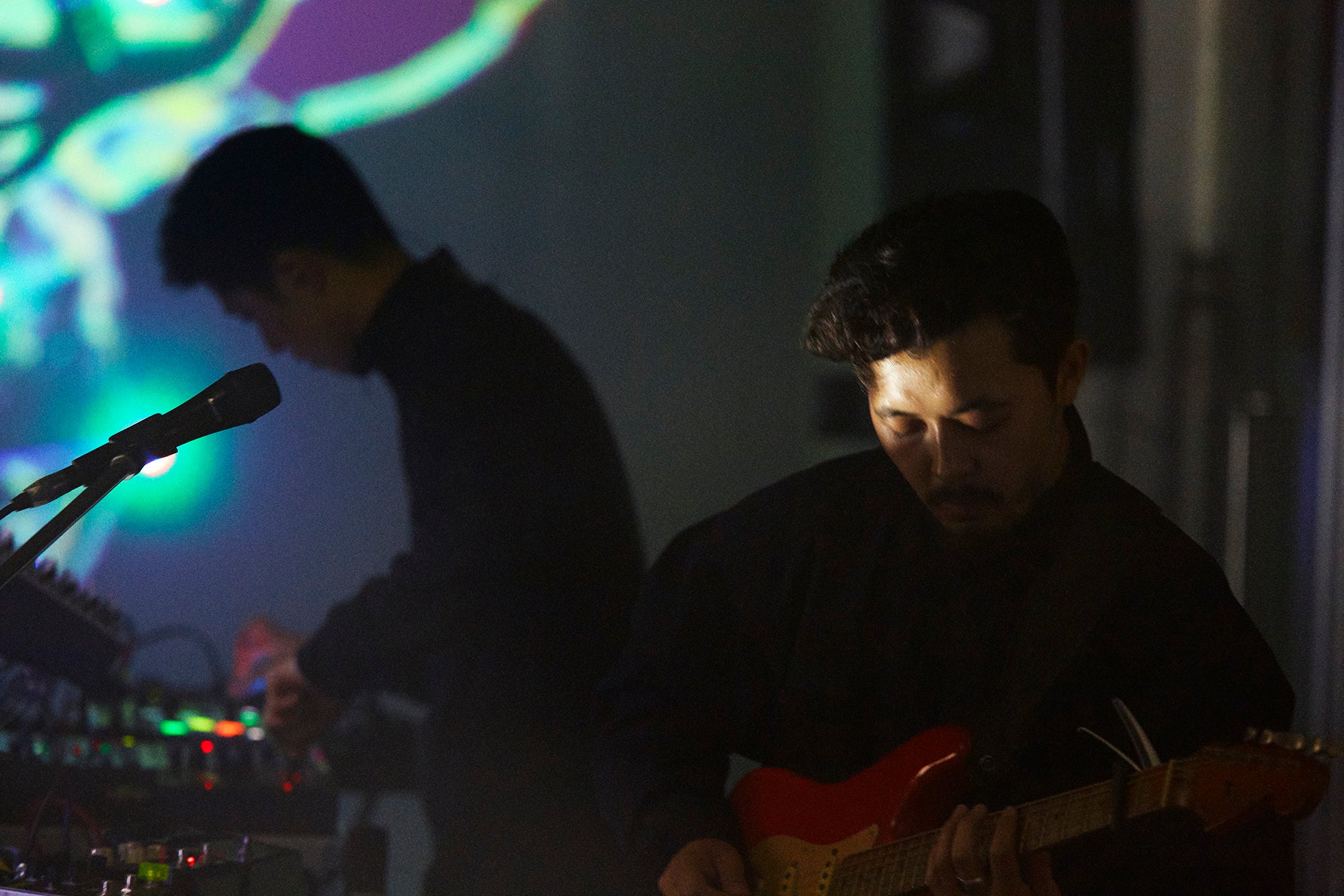 ダビーなインタールードを挟んで演奏されたのは、「SSWB」。2017年にリリースされたEP『TEMPEST』冒頭曲で、オリジナル音源は躍動するベースラインと抑制の効いたドラム、小林うてな(Black Boboi)によるスティールパンが織りなすミニマルなアンサンブルが印象的だった。が、ここではリズムマシンの無機的なビートとオリエンタルな響きのシンセを前面にフィーチャーし、ベースは時にシンプルなフレーズで曲の重心を支え、かと思えば高音のアルペジオでボーカルに絡みつく。ストイックなまでに削ぎ落とされたサウンドプロダクションから、より多層的・重層的な方向へとシフトした『NO MOON』仕様のアレンジといえるだろう。