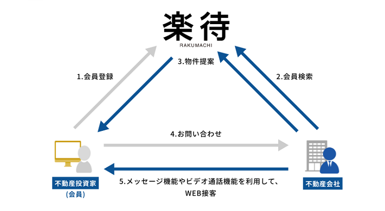 物件提案に対して問合せがあった場合、楽待のメッセージ機能やビデオ通話機能を用いたオンライン商談が可能です。