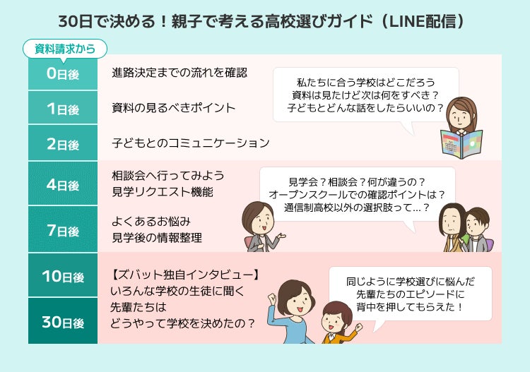 ウェブクルー、ズバット 通信制高校比較がLINEで新サービス配信開始「30日で決める!親子で考える高校選びガイド」