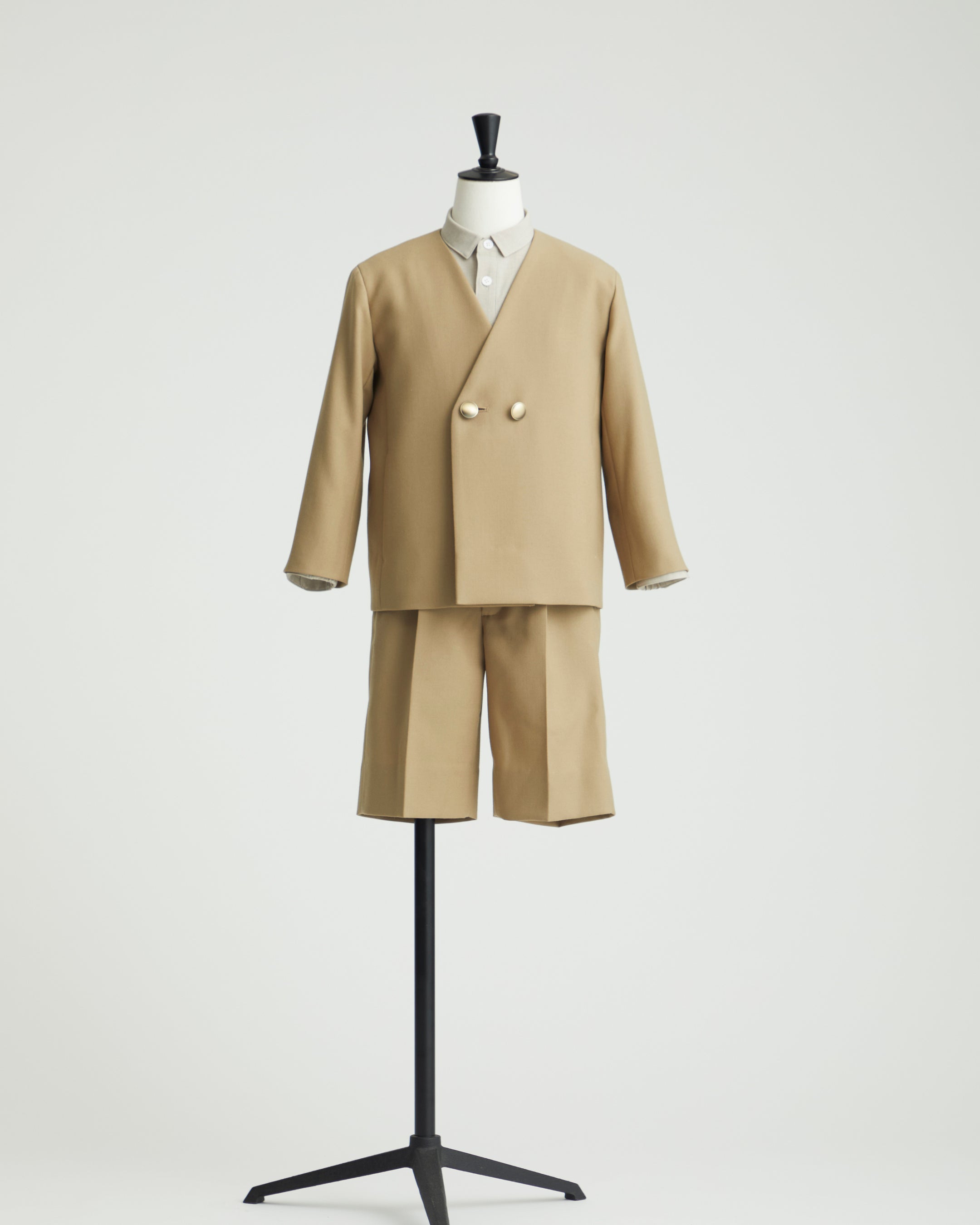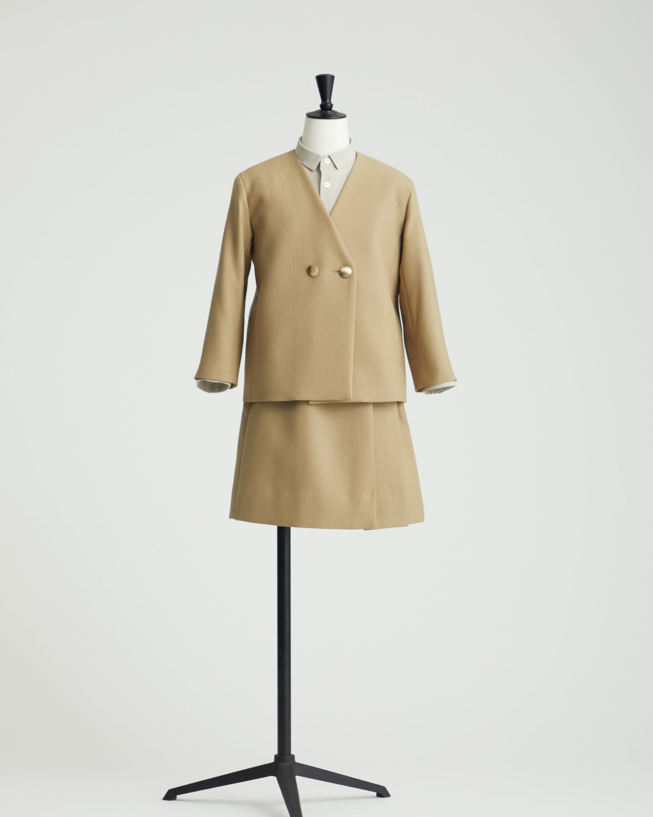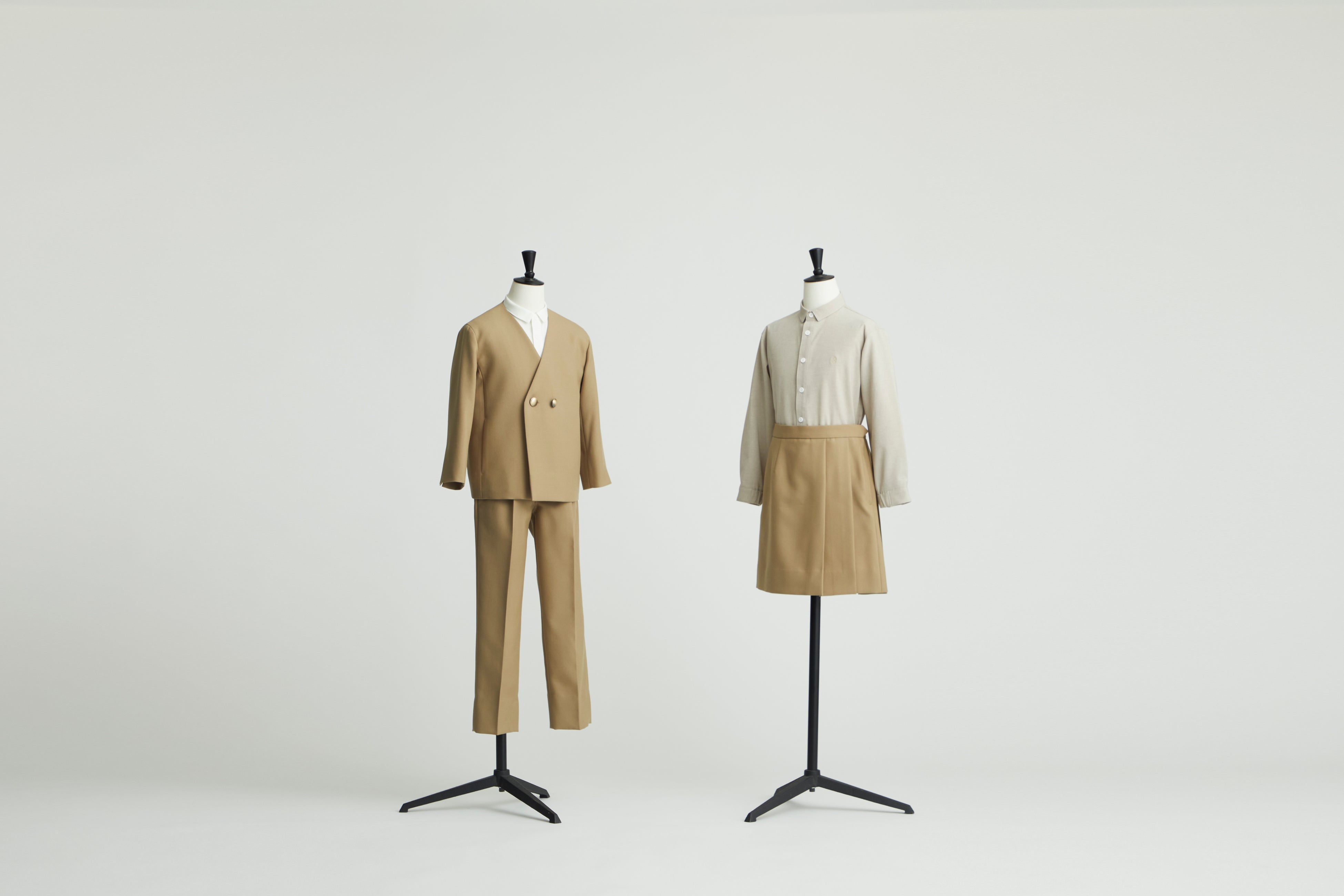 ジャケット、パンツ、キュロットの色には、柔らかく上品な印象を与えるブラウンを採用。国籍や文化的背景を問わず、顔立ちや髪型、髪色に自然に調和するカラーリングです。ジャケットとシャツは男女共通の仕様で、ボタンのかけ替えにより男女兼用での着用を可能にしました。