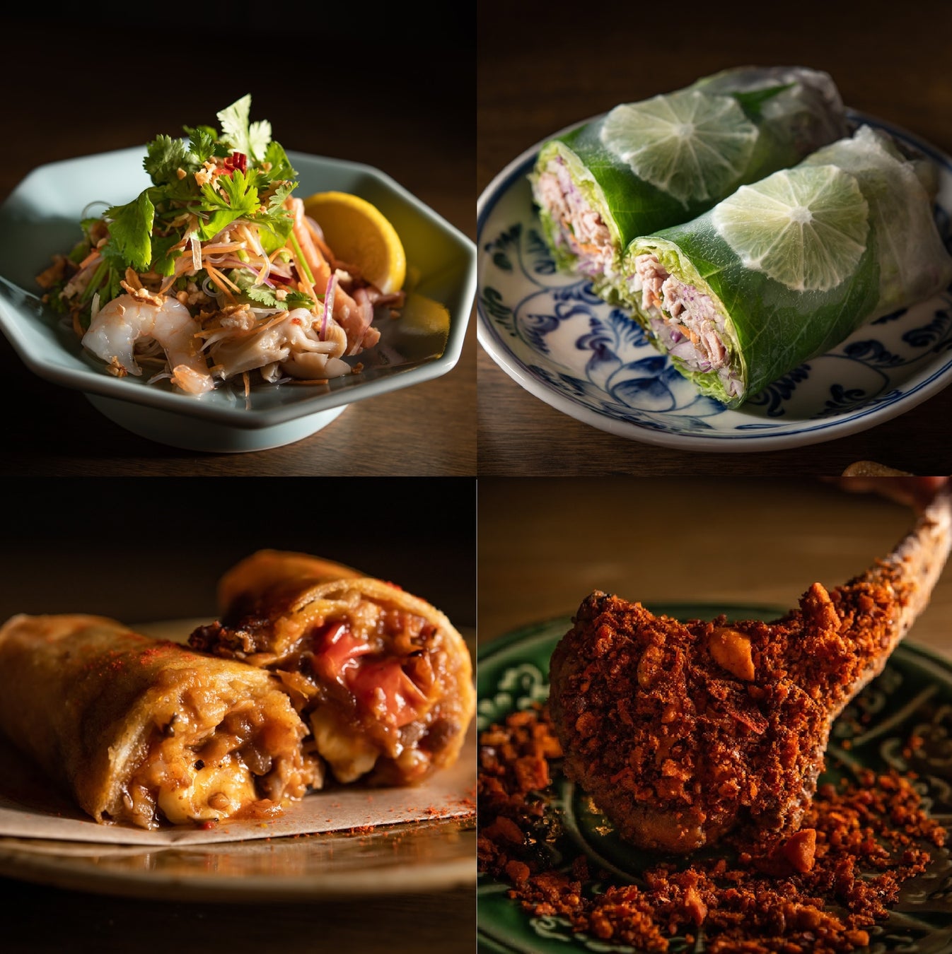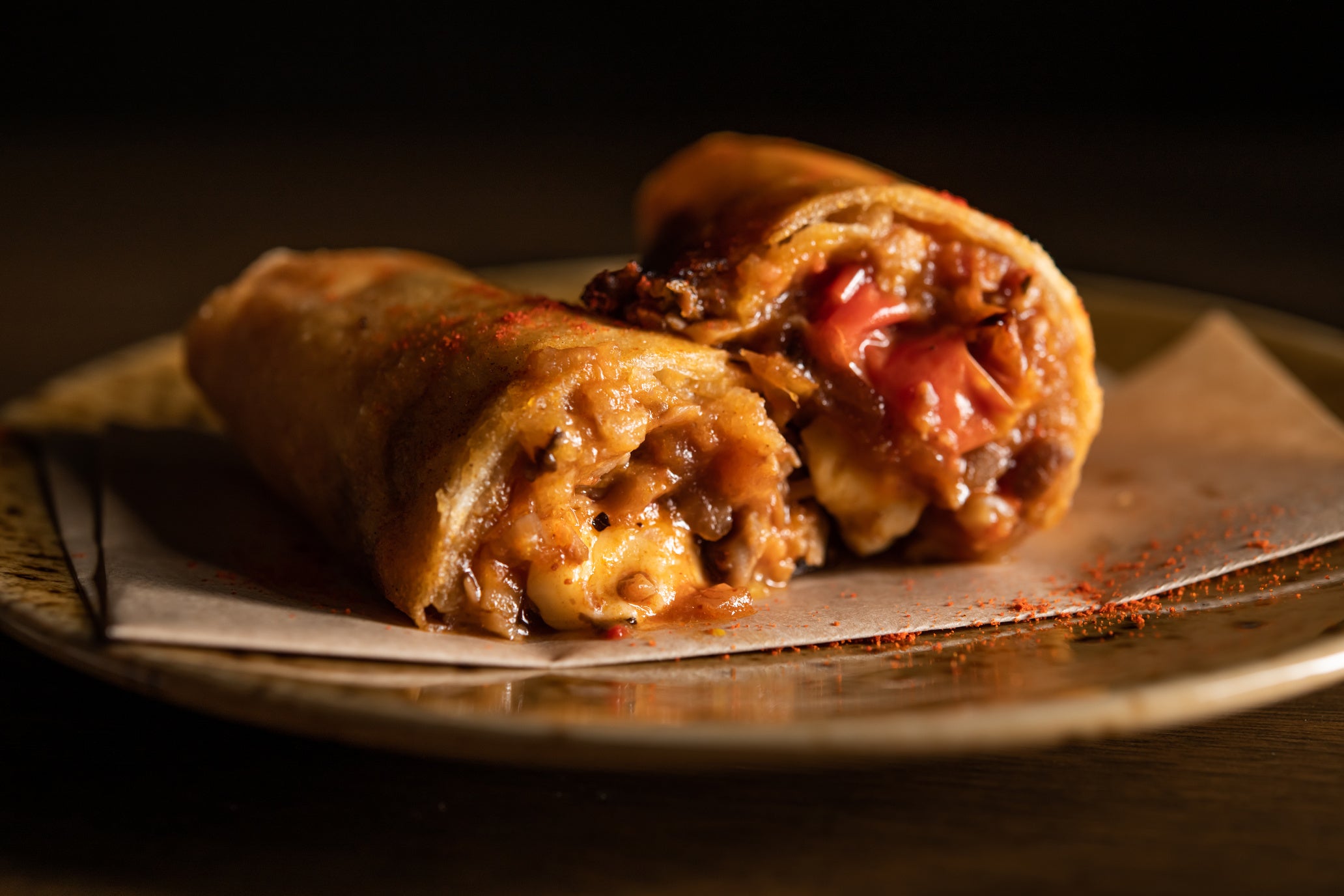自家製のトマトソース・フレッシュトマト・青唐辛子にモッツァレラチーズが絡む、スパイシーな揚げ春巻です。ザクザクの食感と共にフィリングの刺激をお楽しみください。(400円/本)