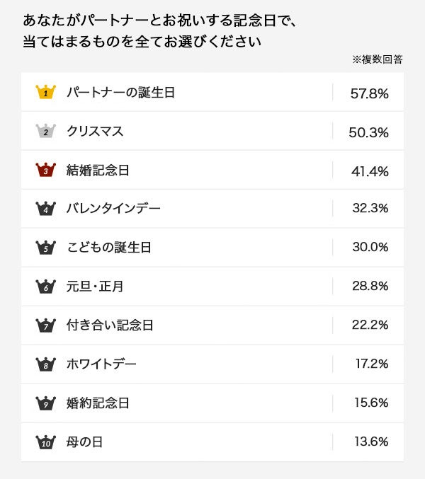 Q.あなたがパートナーとお祝いする記念日で、当てはまるものを全てお選びください。