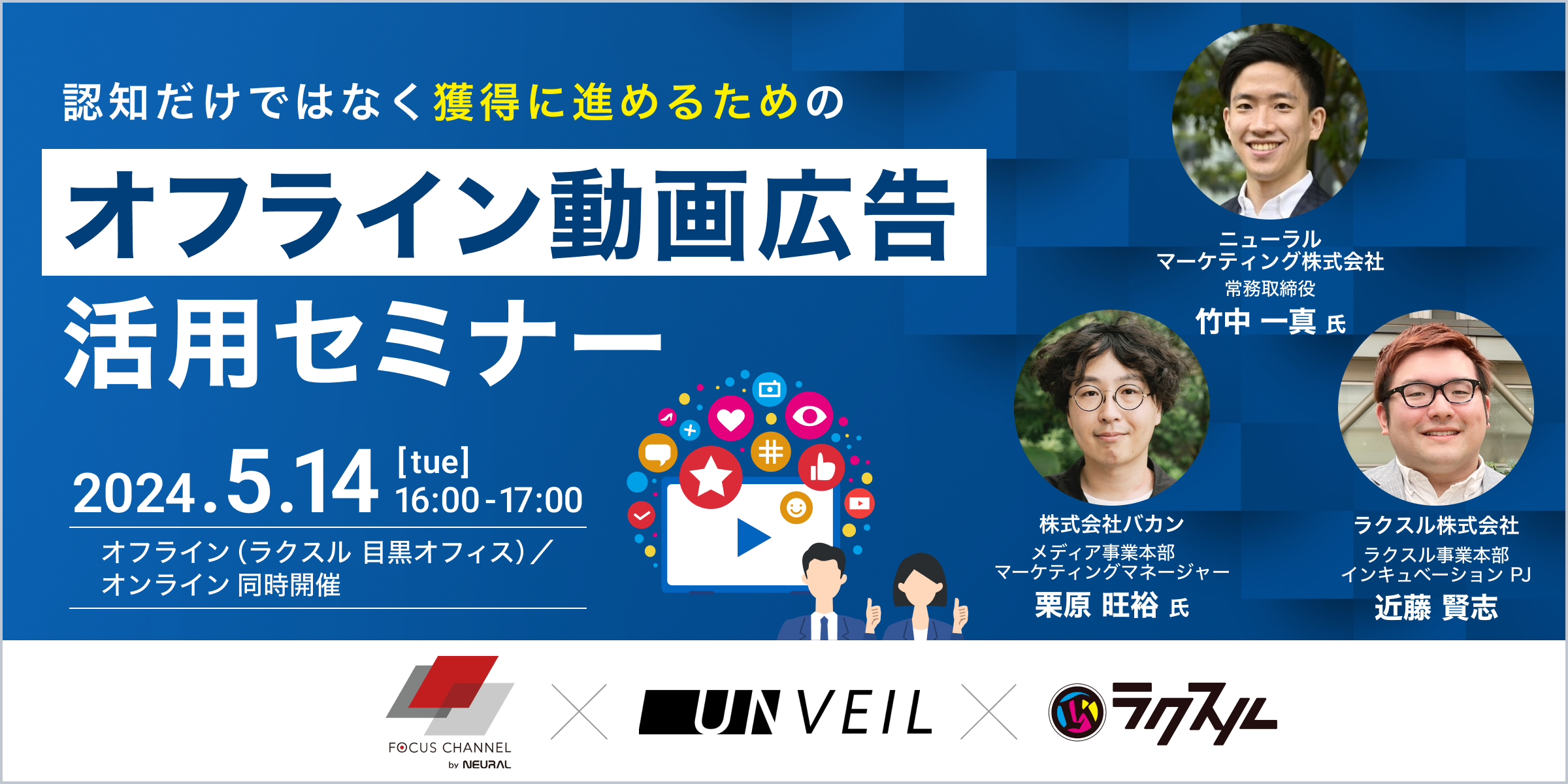 【2024年5月14日(火)ニューラルマーケティング×バカン×ラクスル共催】認知だけではなく獲得に進めるための、オフライン動画広告活用セミナー