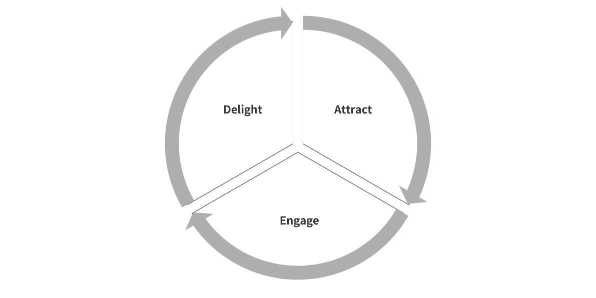 この制度は、「Attract(惹きつける)」「Engage(信頼関係を築く)」「Delight(楽しむ)」の3段階で構成され、優秀な人材が新たな人材を呼び込み、育成し、さらに優れた人材へと成長する好循環を生み出しています。