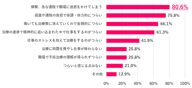 ★仕事をしながらの不妊治療でつらいことは「頻繁、急な通院で職場に迷惑をかけてしまう」