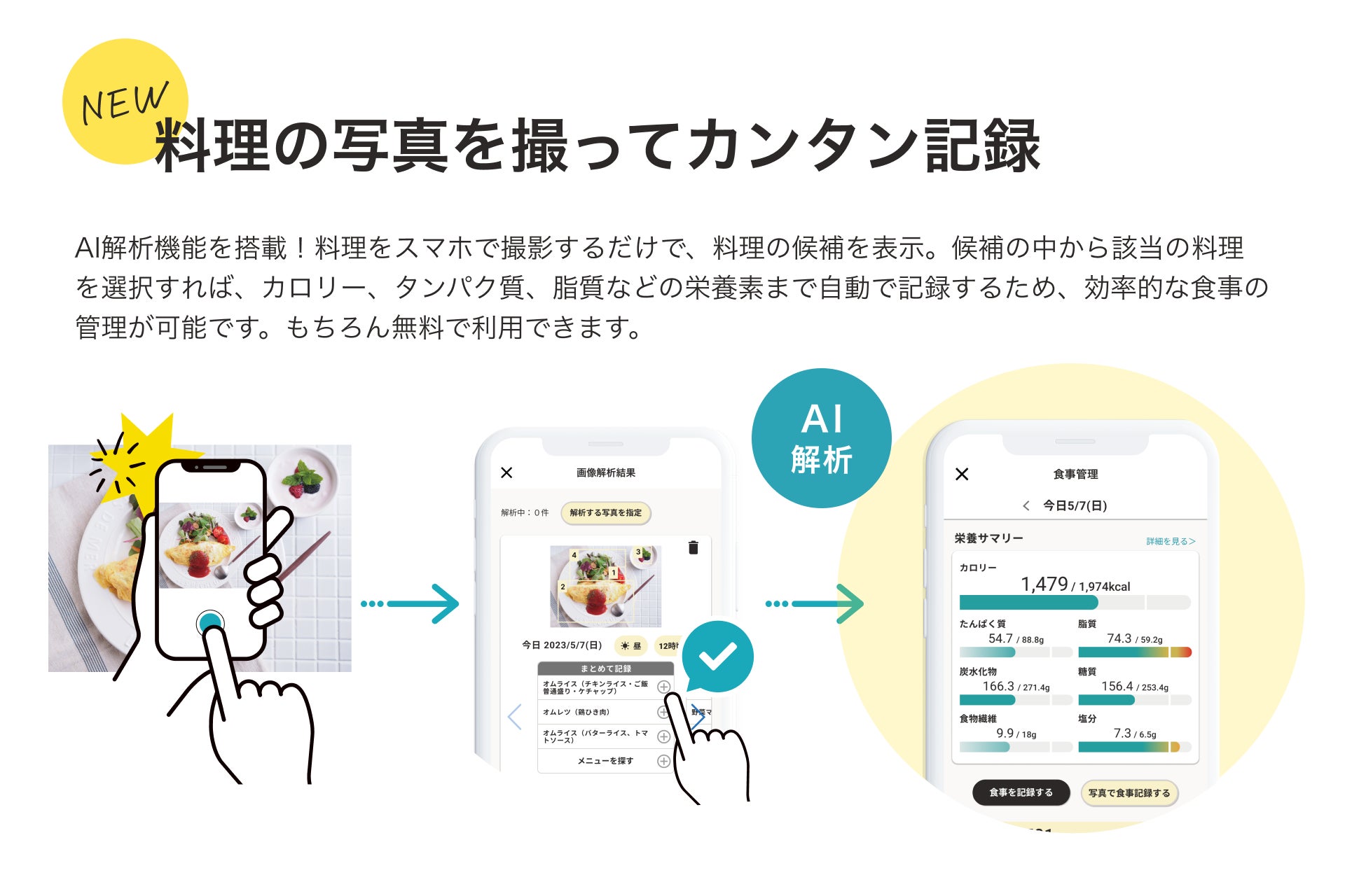 誰でもカンタン、だから続く。無料で使える食事管理機能が大幅アップデート