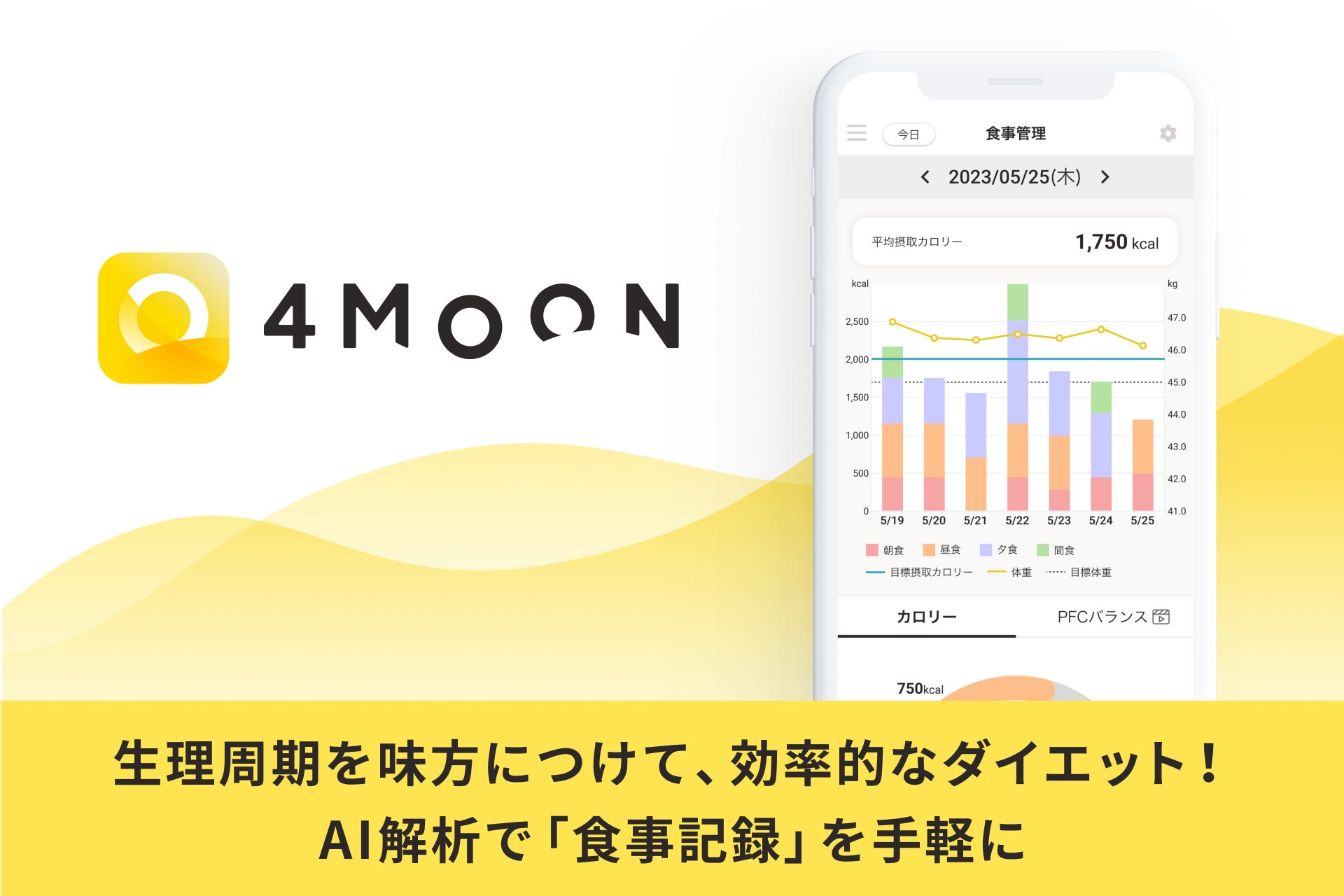女性の身体は生理周期によって日々変化します。効率的に、身体に無理のないダイエットをするには、生理周期を味方につけることが重要です。4MOONは、毎月の生理日記録と毎日の体重記録をするユーザーさまが多くいたことから、この度、食事記録の大幅アップデートを行いました。