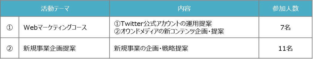 当企画は就職に意欲的な学生を支援することを目的に、2016年より継続開催しております。本年度は「Webマーケティング」と「新規事業開発」の2つをテーマとして、それぞれ課題解決に向けた活動を行いました。なお、参加者については全国の大学より募集し、以前より交流のある産業能率大学を中心に、合計18名(男性8名、女性10名)がインターンシップに参加いたしました。
