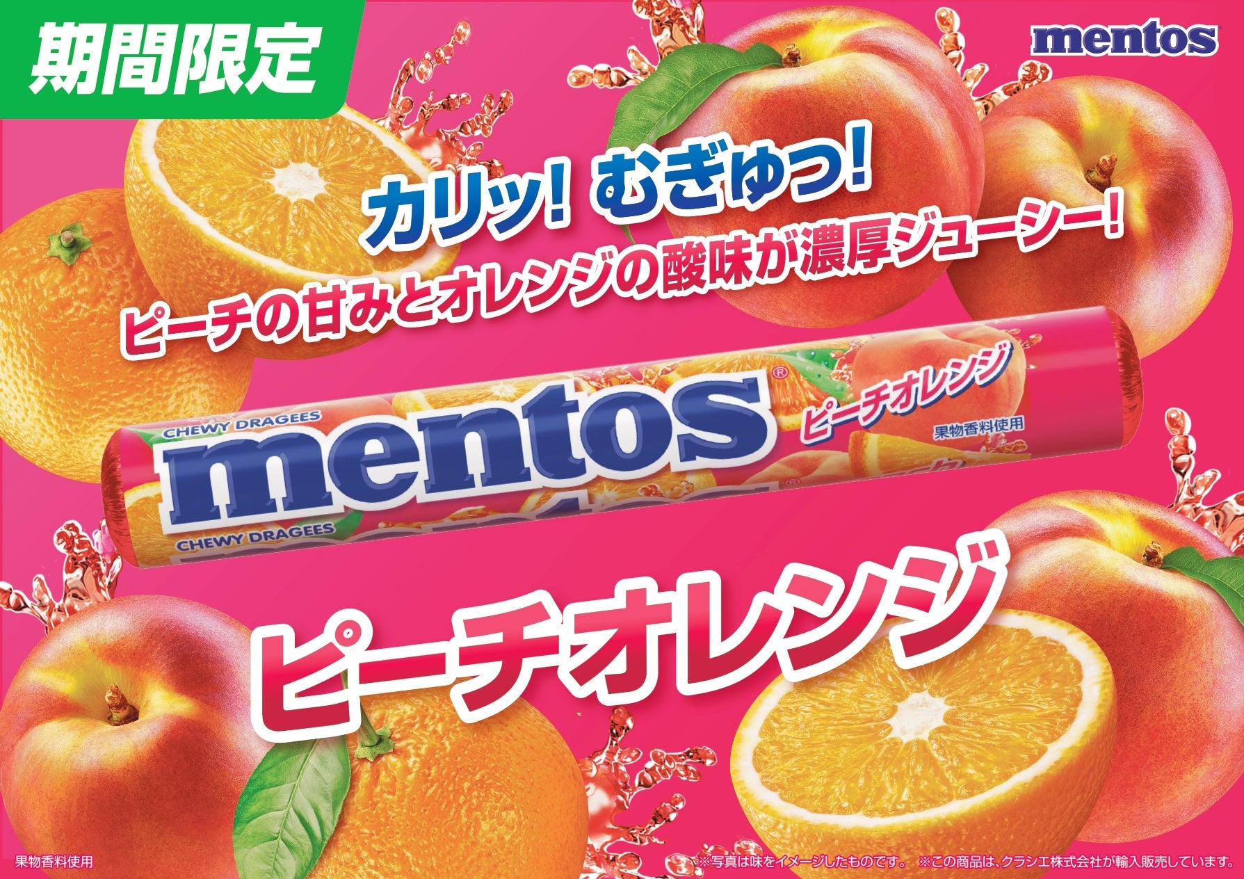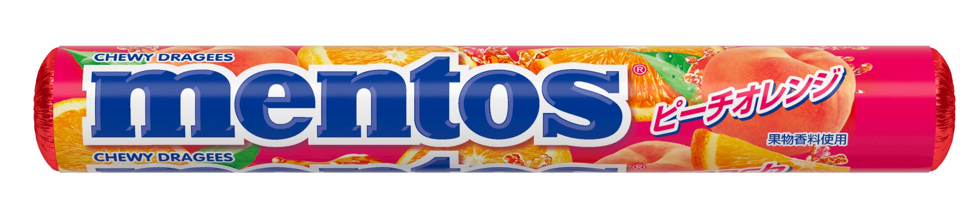 「メントス」の中でも人気のフレーバー、ピーチとオレンジが一緒になった「メントス ピーチオレンジ」が登場します。メントスならではの独特の食感と、ピーチの甘さとオレンジのスッキリ感のバランスがクセになり、いつでもどこでも誰とでも楽しめます。濃厚でジューシーなピーチとオレンジの組み合わせに癒され、ひらめきとワクワクする心が目覚める味わいです。