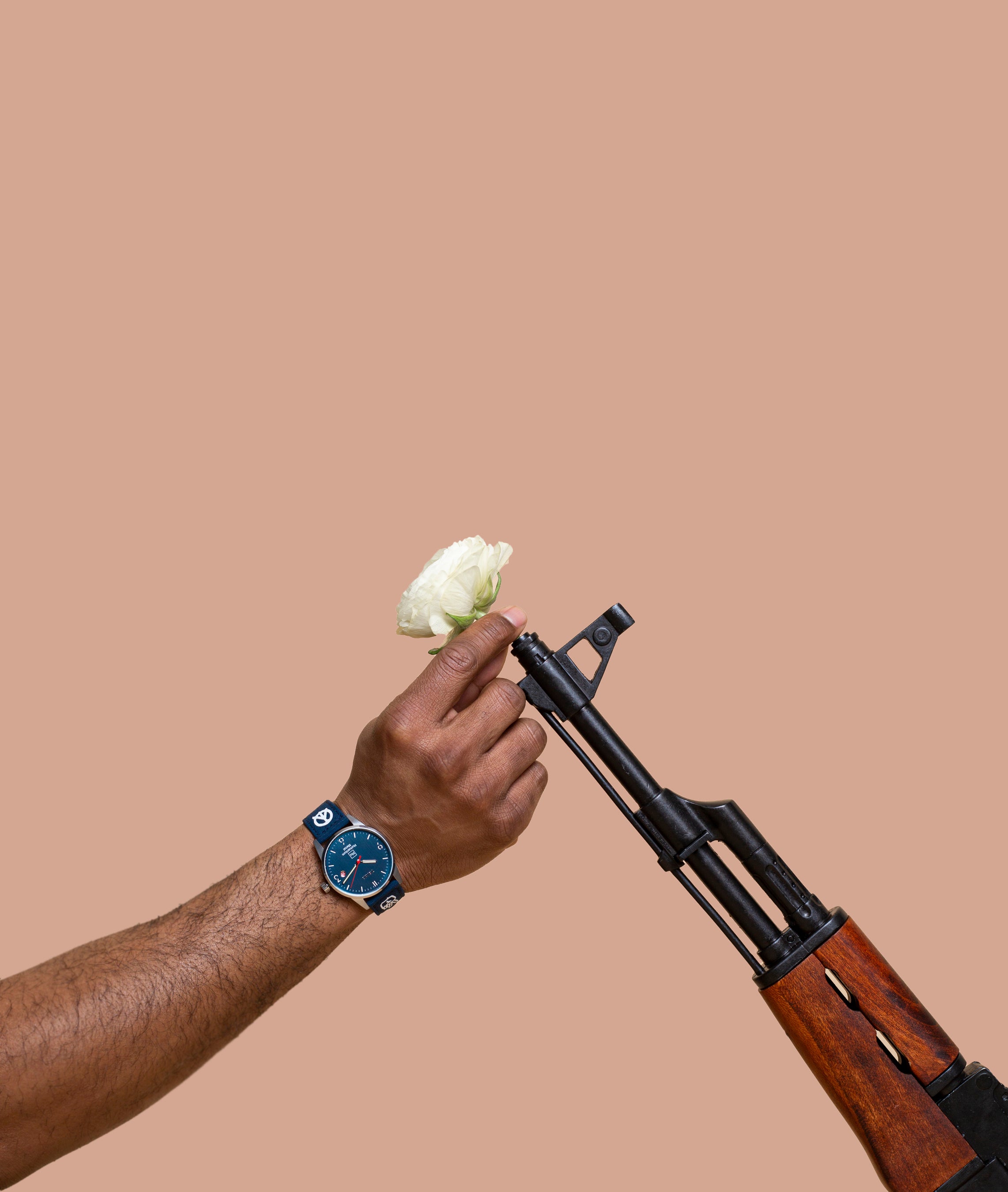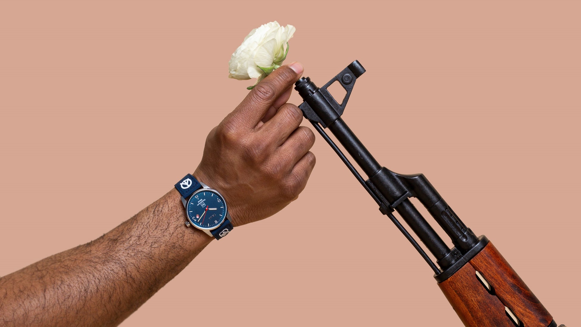 違法銃器を溶かして固めた金属“Humaium Metal”を腕時計の素材として使用しているTRIWAの「TIME FOR PEACE」シリーズ。2018年からTRIWAが時計を変化の象徴にするために活動しているTIME FOR CHANGEプロジェクトの一つで、プロジェクト発端のきっかけとなったシリーズです。