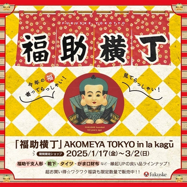 福助株式会社(本社:東京都江東区/代表取締役社長:坂本友哉)は、2025年1月17日(金)~3月2日(日)の期間、株式会社 AKOMEYA TOKYO(本社:東京都渋谷区/代表取締役社長:山本浩丈)が運営するAKOMEYA TOKYO in la kagū にてポップアップショップを実施することとなりましたのでお知らせいたします。