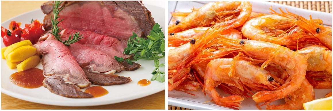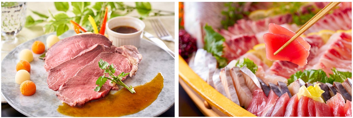 ご馳走メニューは、お肉派にはライブキッチンでお客様の目の前で切り分ける「ローストビーフ」を、お魚派には「お造り」をご用意いたしました。