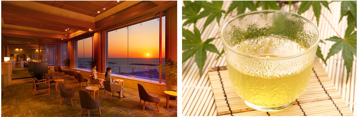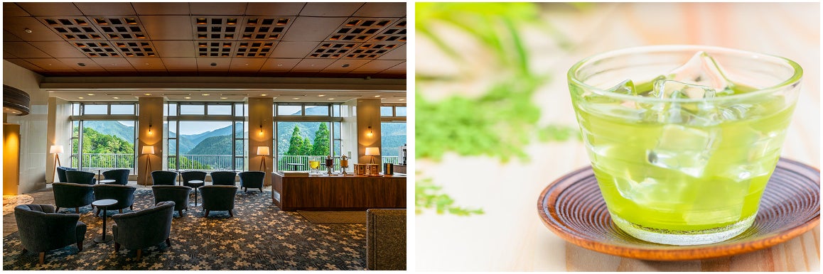 右:Premium 下呂新館ならではの1杯。岐阜県内で生産される美濃茶の中でも、白川町と東白川村を中心とした標高の高い山間部で栽培される「美濃白川茶」をご用意しています。爽やかな味と、香り高さをお楽しみください。