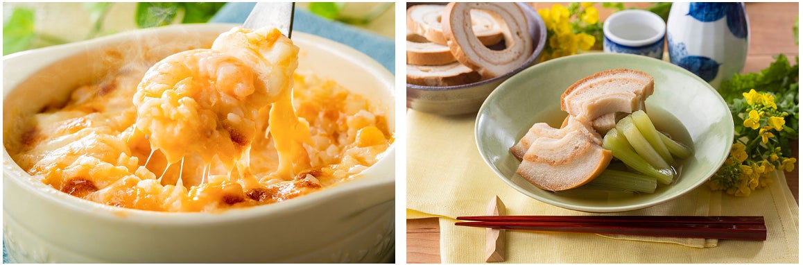 左:村上・岩船地域で生産される岩船米を使ったドリア。ホワイトソースととろけるチーズの優しい味わいはお子様も大好きな味。