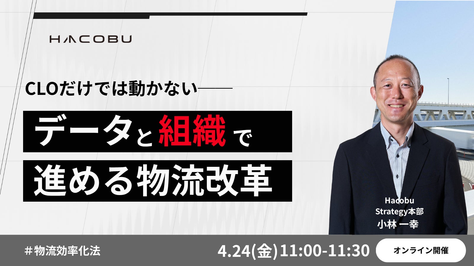 データの力で物流課題を解決する株式会社Hacobuは、2026年4月24日、「CLOだけでは動かない─データと組織で進める物流改革」と題し、オンラインセミナーを開催いたします。