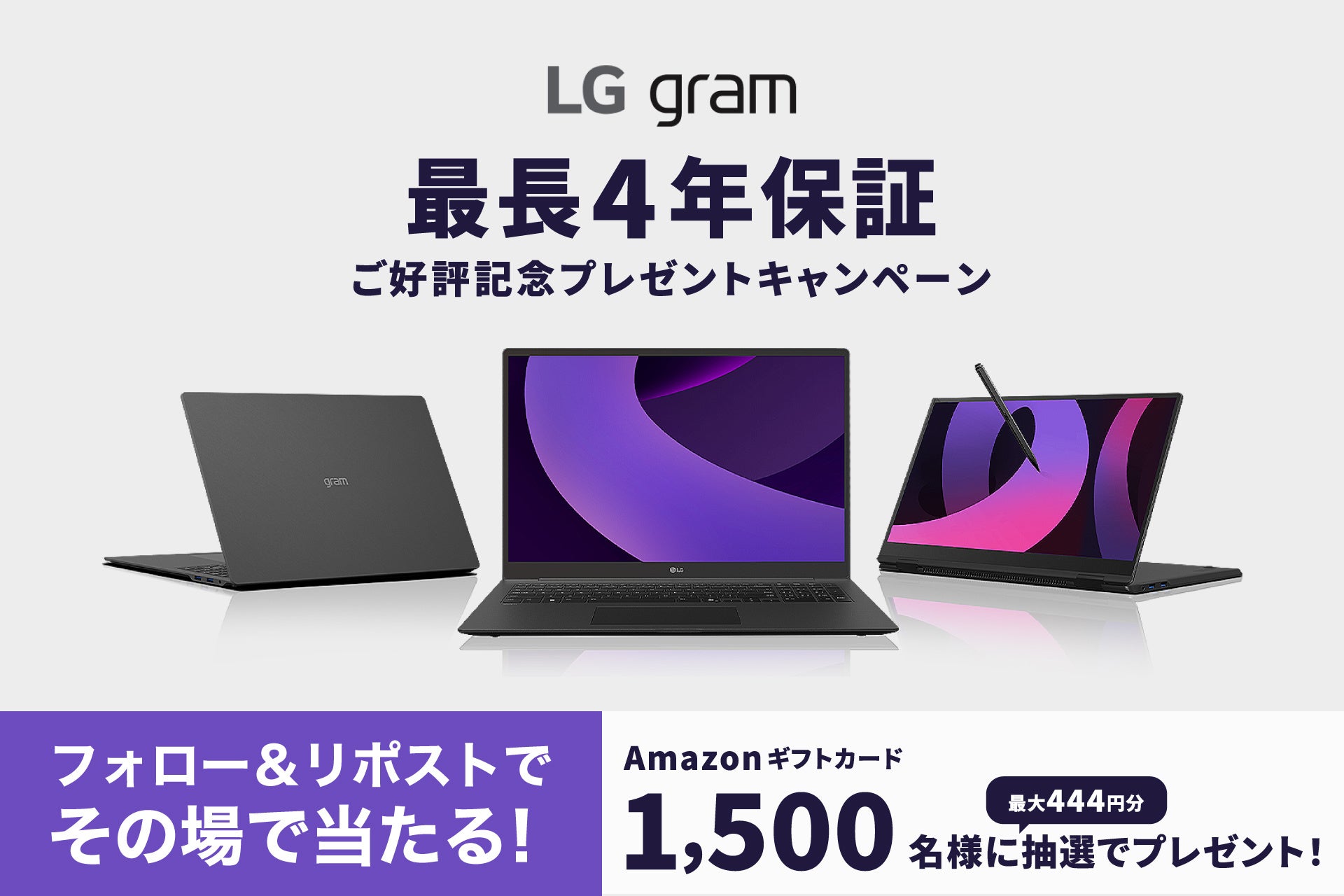合計1,500名様にAmazonギフト券が当たる!『LG gram最長4年保証ご好評記念プレゼントキャンペーン』を実施