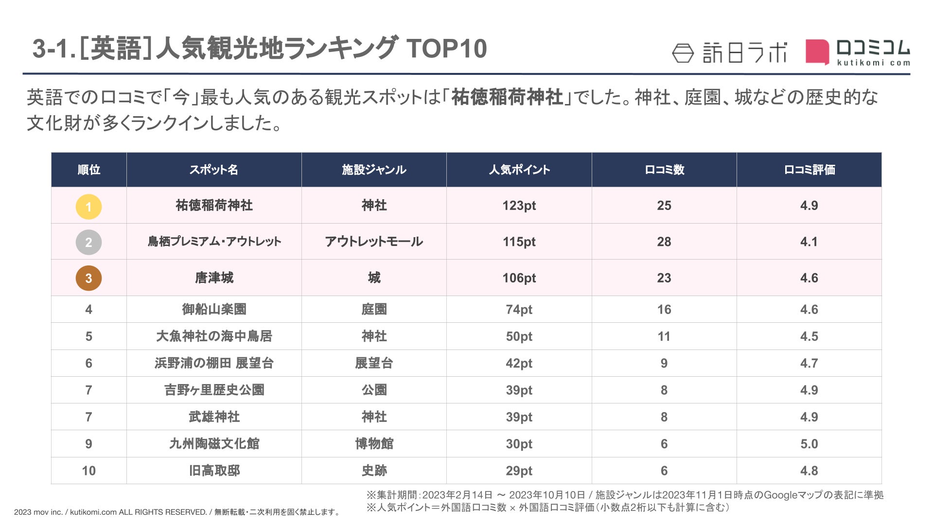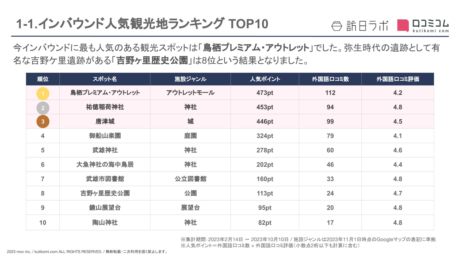 【独自調査】インバウンド人気観光地ランキング佐賀県編:コロナ後 最新の訪日客の支持を集めたスポットTOP10を発表 #インバウンドMEO
