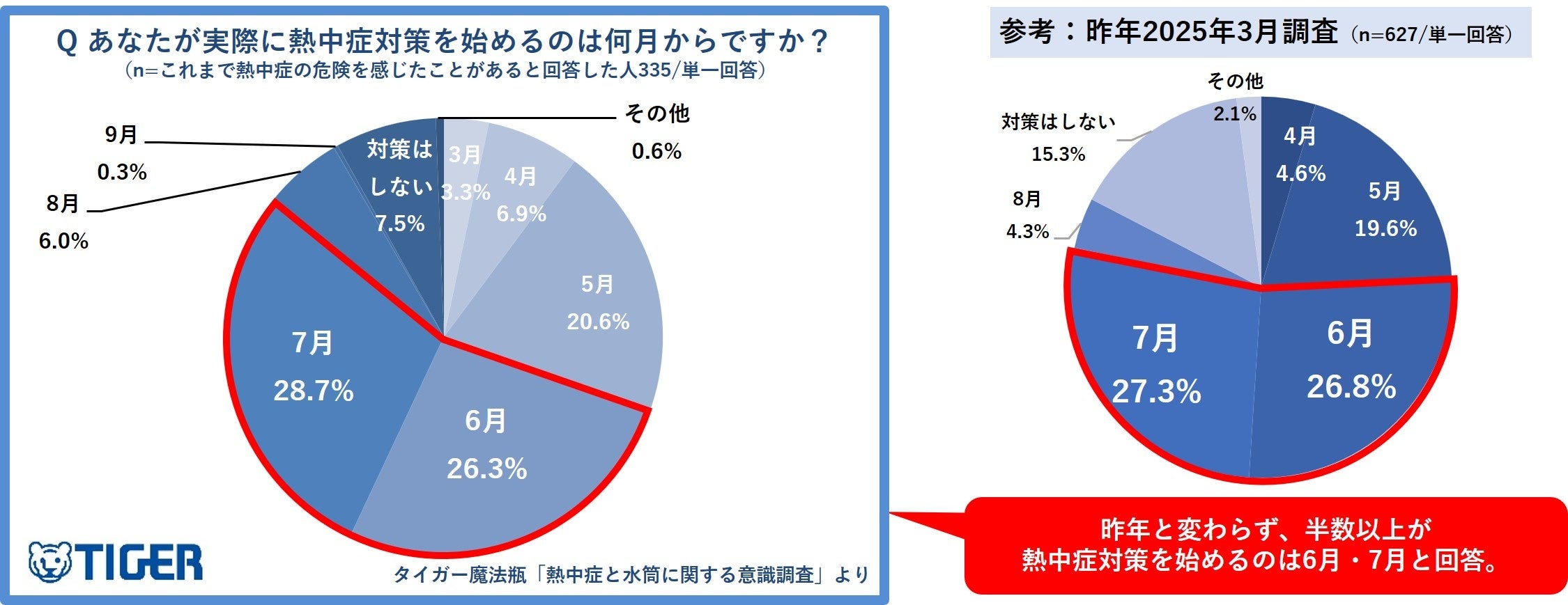 春時期から熱中症の危険を感じる人は3割超の一方、実際に熱中症対策を行うのは6,7月からが半数以上。過去と比較しても、ほとんど変わらず。