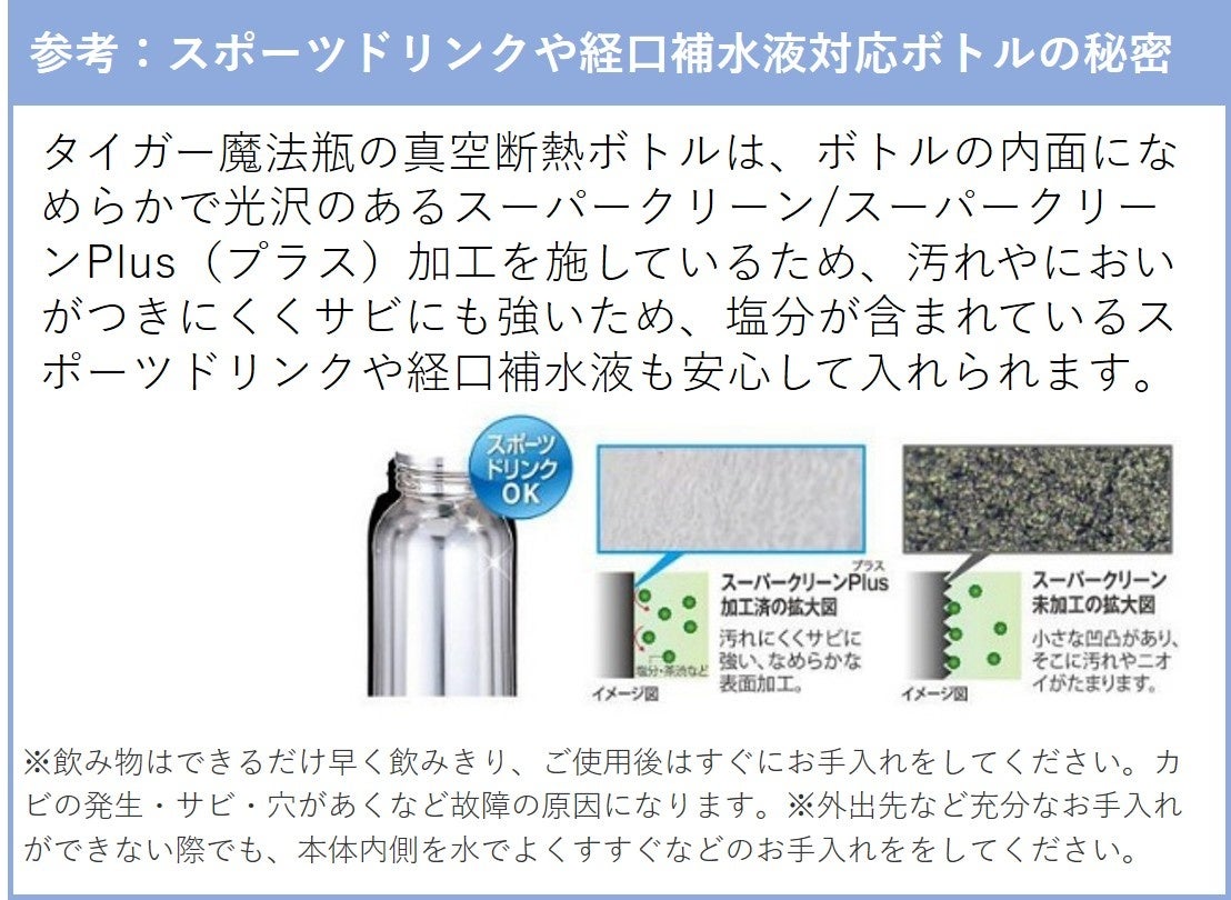 本プレスリリースでは医師が推奨する理想的な水分補給法「ひっそり補水」のご紹介とともに、ひっそり補水にも最適なストローつきの真空断熱ボトル「MTS-W075/W088」をご紹介します。タイガー魔法瓶は、今後も「温度」に関わる技術や想いをもとに、水筒による水分補給での熱中症対策を呼びかけてまいります。