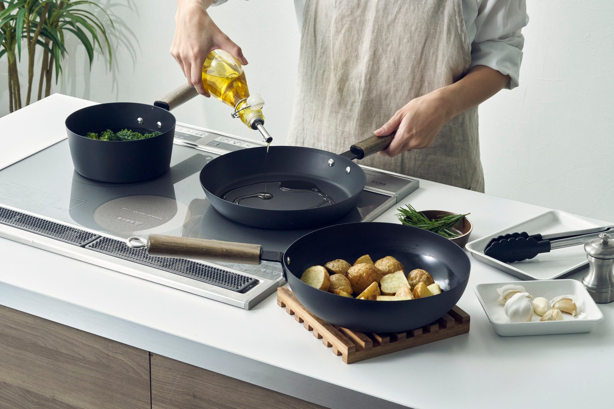 煮ものや茹でものに便利なスープパンです。蓄熱性が高いので、少量の油での揚げ焼きにもおすすめです。