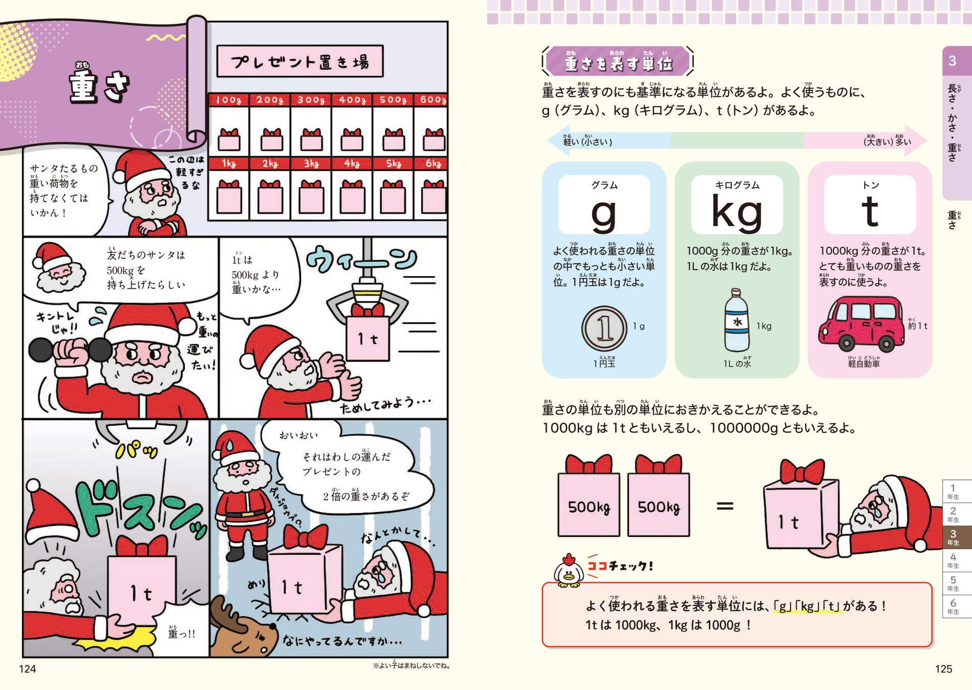 本書は、小学校6年間の算数の基本をマンガで学べる学習本です。学習テーマごとに、クスっと笑えるショートマンガで解説がスタートするため、苦手意識がある人も読みやすい内容になっています。また、「方法」ではなく「概念」の理解を重視しているため、先取り学習にもぴったり。算数脳の土台がしっかり育ちます。288ページの大ボリュームに6年分がぎゅっとつまっている1冊です。