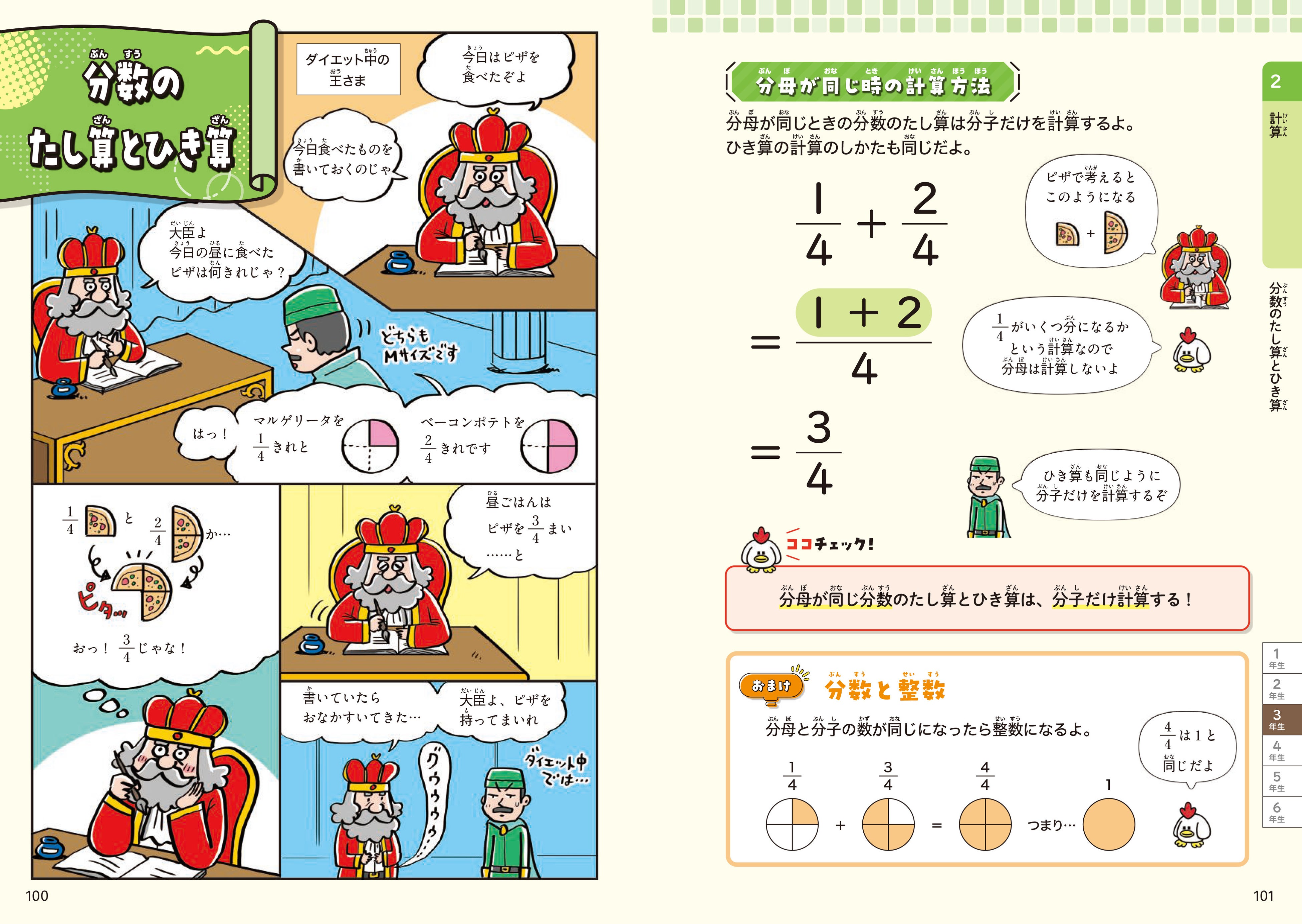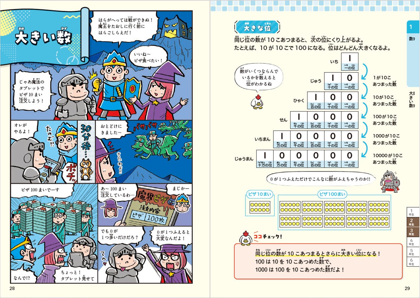 苦手意識をもちやすい「計算」や「図形」も大事なところをわかりやすく解説。算数の考え方を具体的なシーンに落とし込んでいるので、理解がしやすいのも特徴です。