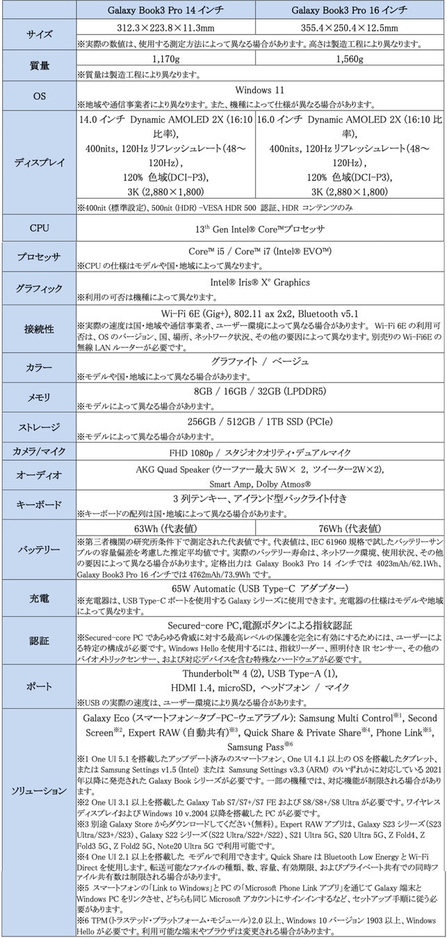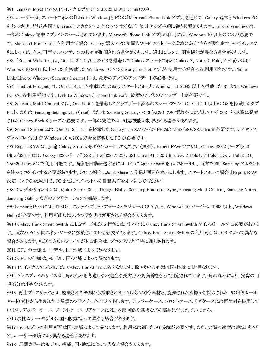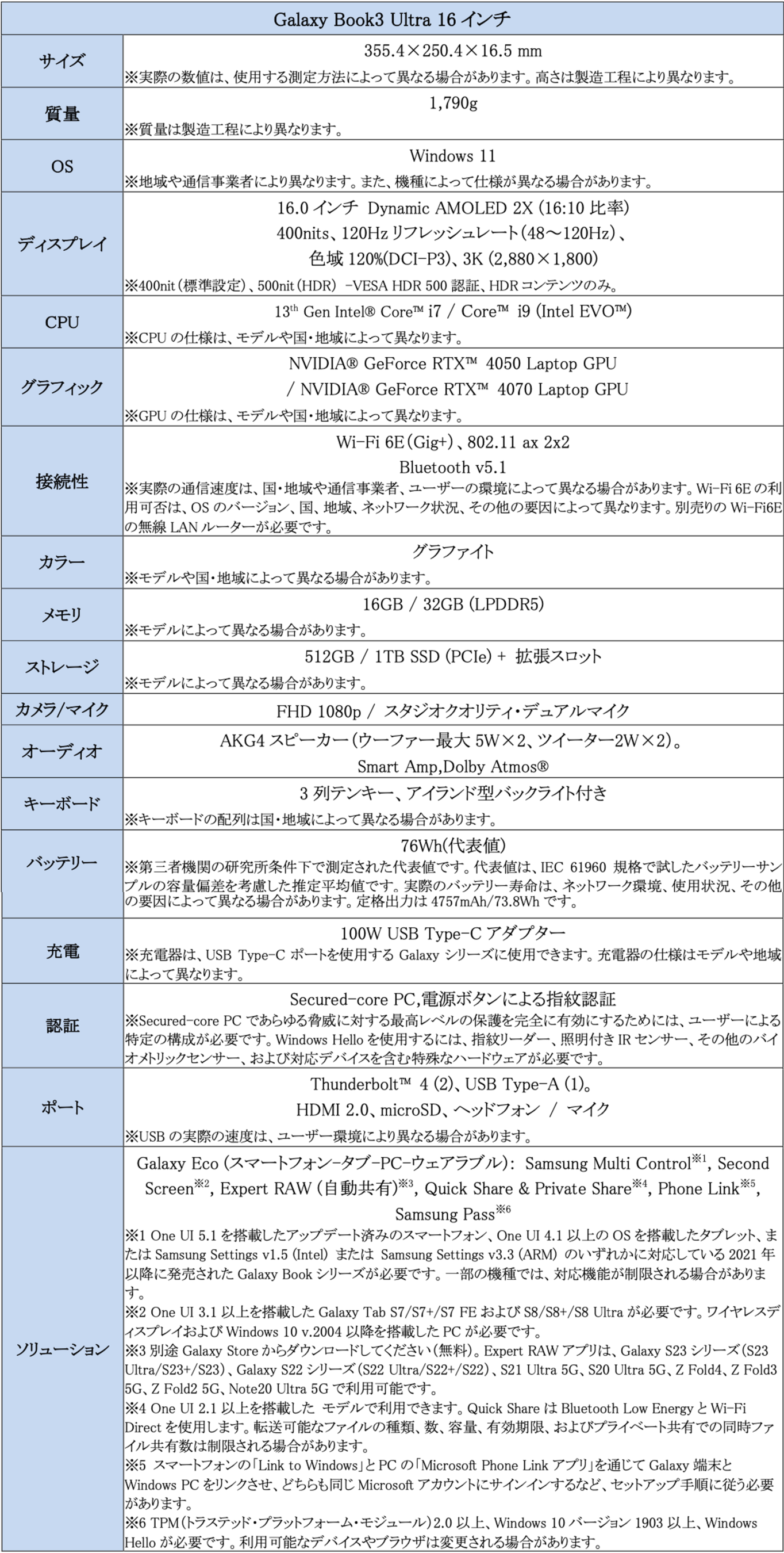 https://news.samsung.com/global/the-all-new-galaxy-book3-ultra-an-unmatched-samsung-galaxy-ecosystem-experience-with-powerful-performance (※Globalサイト)