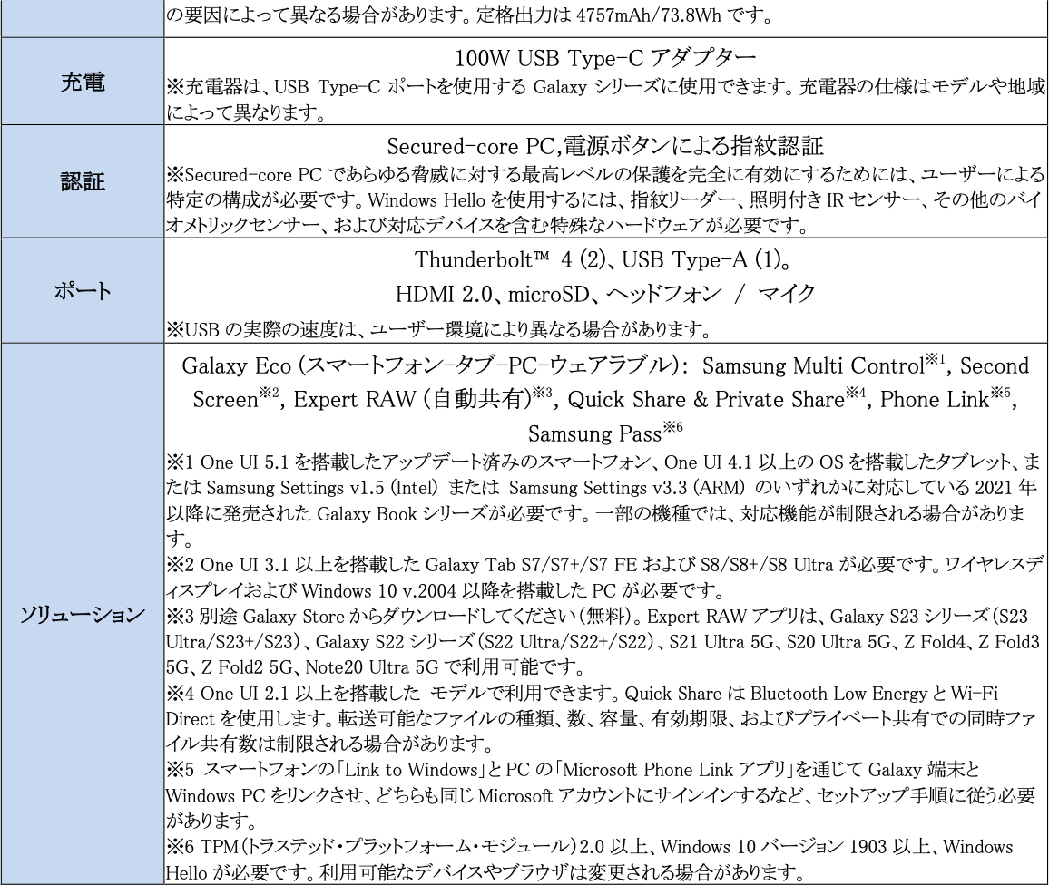 「Galaxy Book3シリーズ」の特徴は以下の通りです。