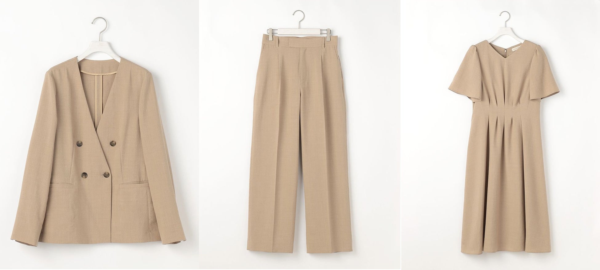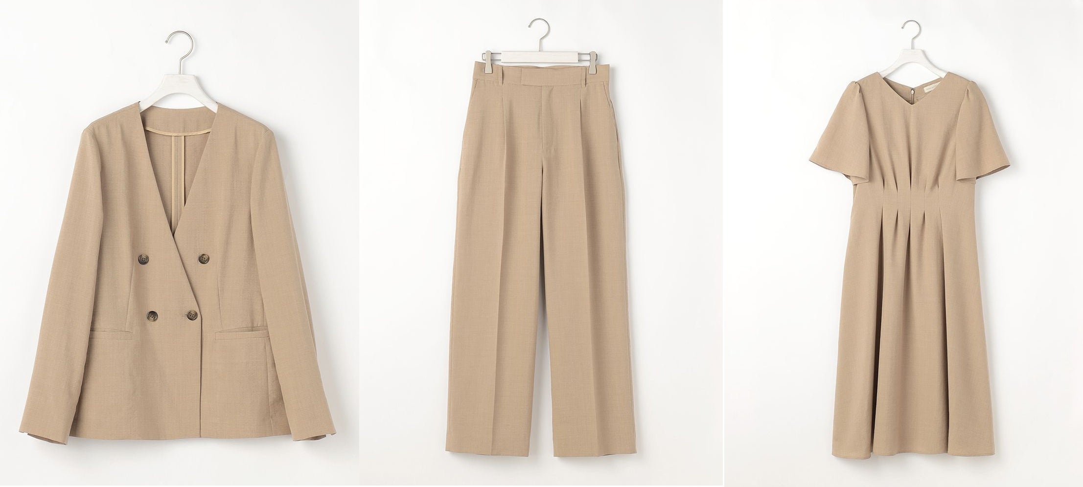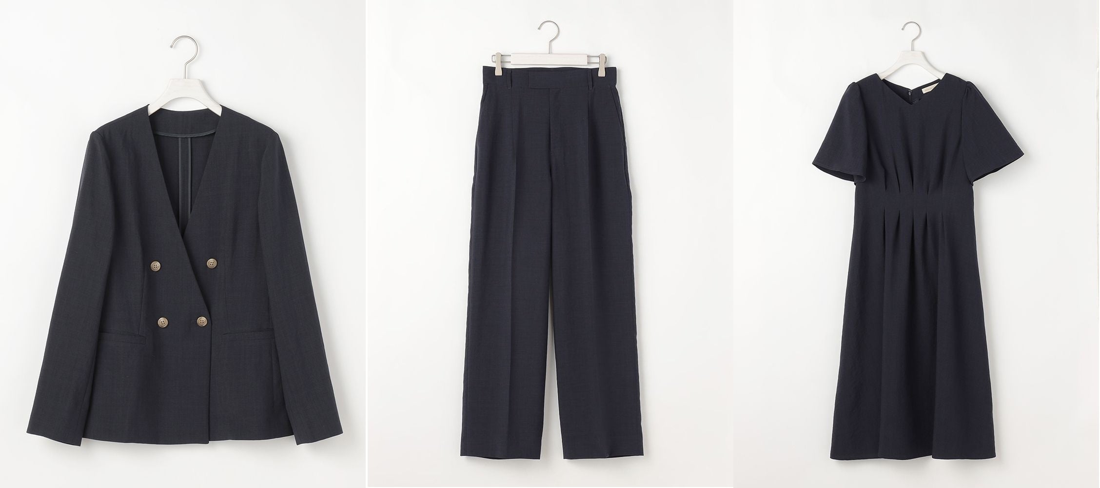 価格:ジャケット17,600円 (税込) / パンツ11,000円 (税込) / ワンピース 20,900円(税込)