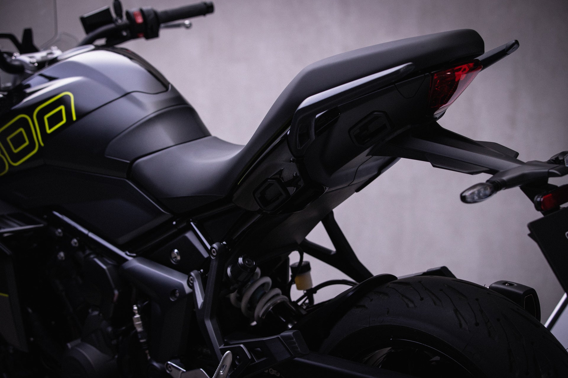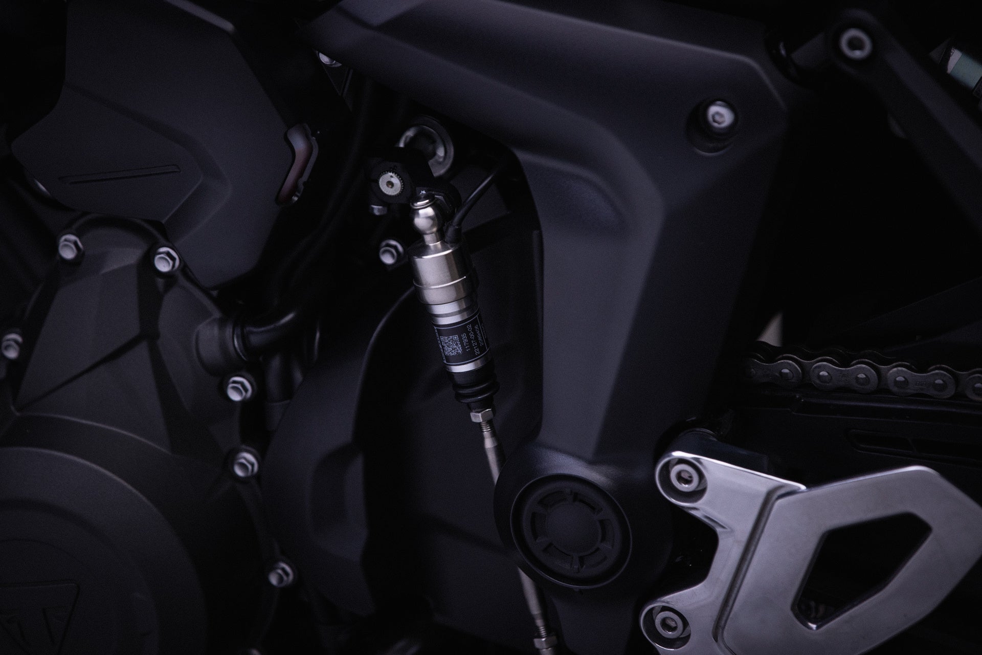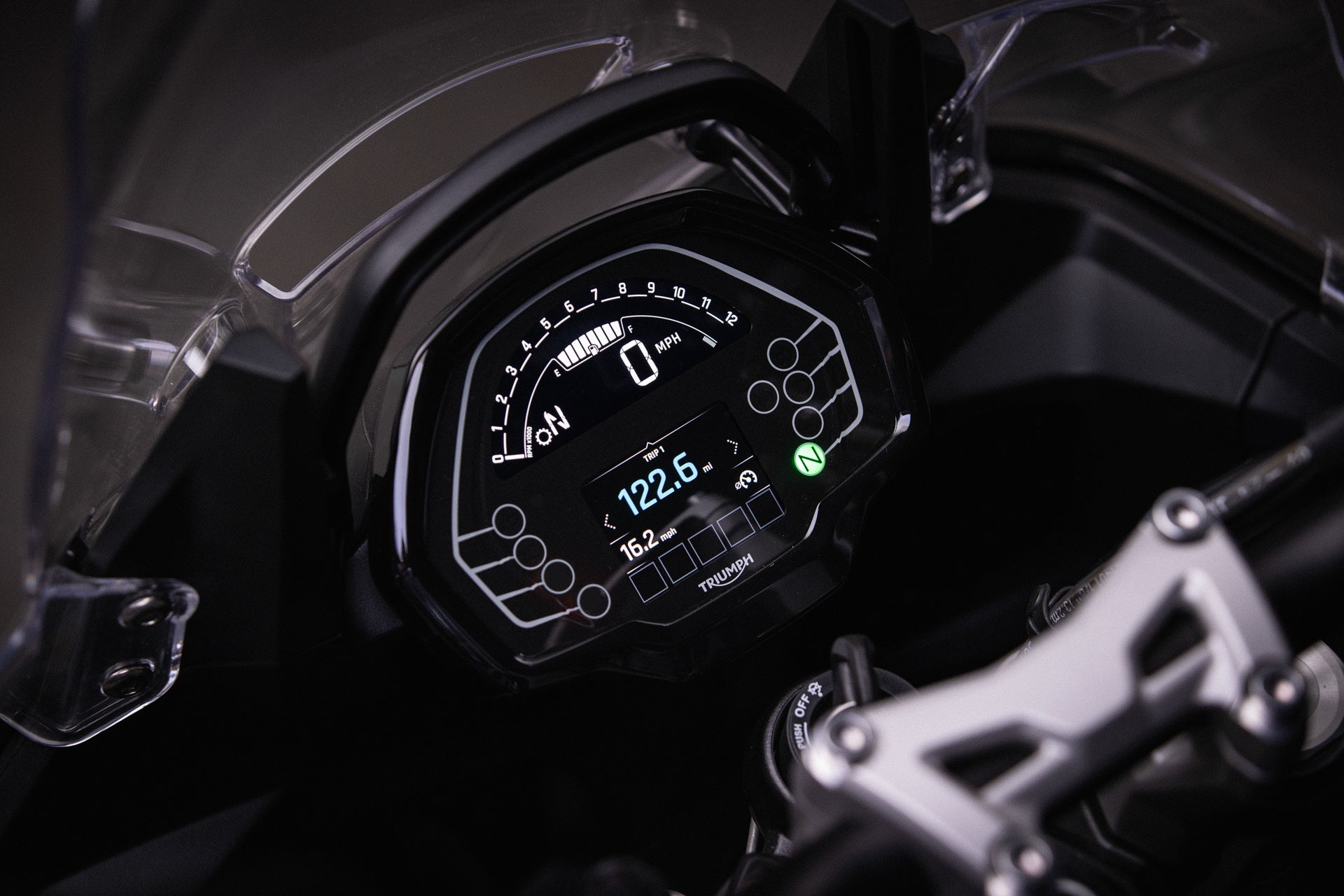 3つのライダーモードはボタンを押すだけで、スポーツ、ロード、レインのモードが利用できます。「ロード」設定と比較すると、「スポーツ」モードではさらにアグレッシブなスロットルレスポンスとなり、ライダーは798cc三気筒エンジンの性能をより簡単に引き出すことができます。一方、「レイン」モードでは、ウェットコンディションでの走行時にトラクションコントロールがより早く介入し、スロットルレスポンスがソフトになることで、より安全なライディングが得られます。