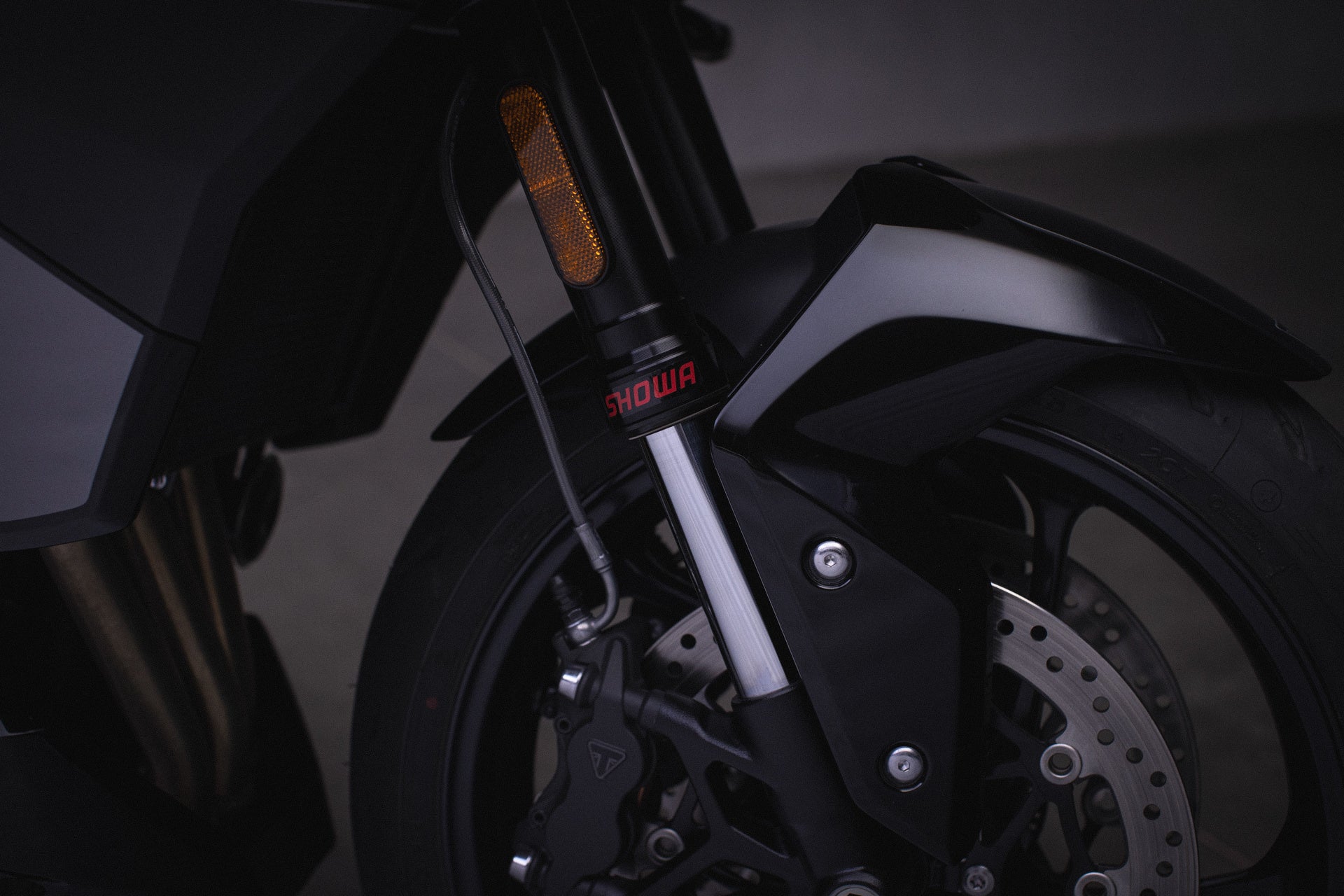 Tiger Sport 800は、Showa製のフルアジャスタブル サスペンションコンポーネントを装備しており、41mm倒立式セパレートファンクションカートリッジフォークには、伸側減衰と圧側減衰の調整機能が奢られています。