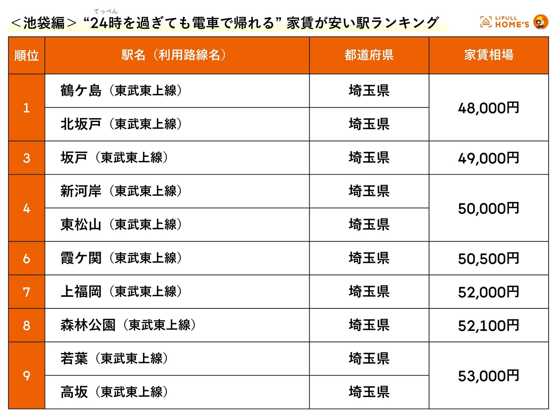 【池袋編】ランキングは「東武東上線」一色、4万円台の駅がTOP3に