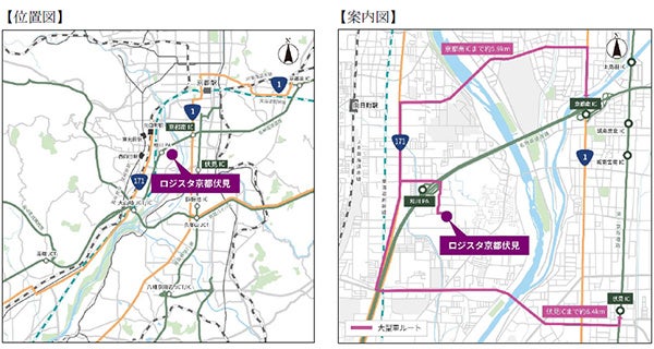 ・名神高速道路「京都南IC」まで約5.9km、第二京阪道路「伏見IC」まで約6.4kmの地点に立地し、複数の高速道路へのアクセスが良好で、関西圏をはじめとする広域への配送が可能です。また、「JR京都駅」から10km圏内に位置していることから、都市部近郊への配送拠点としても優れています。