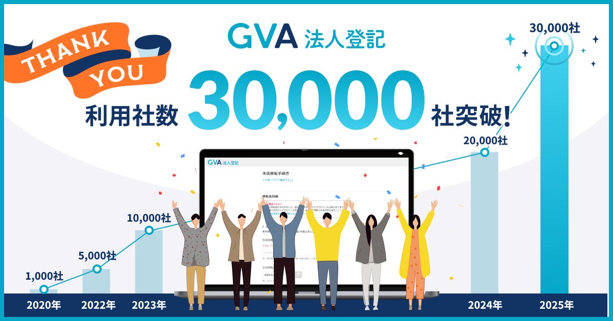 リーガルテックサービスの開発・運営を行うGVA TECH株式会社(本社:東京都渋谷区、代表取締役:山本 俊)が運営する法人登記クラウド「GVA 法人登記」は、累計利用社数がこのたび30,000社を突破したことをお知らせいたします。