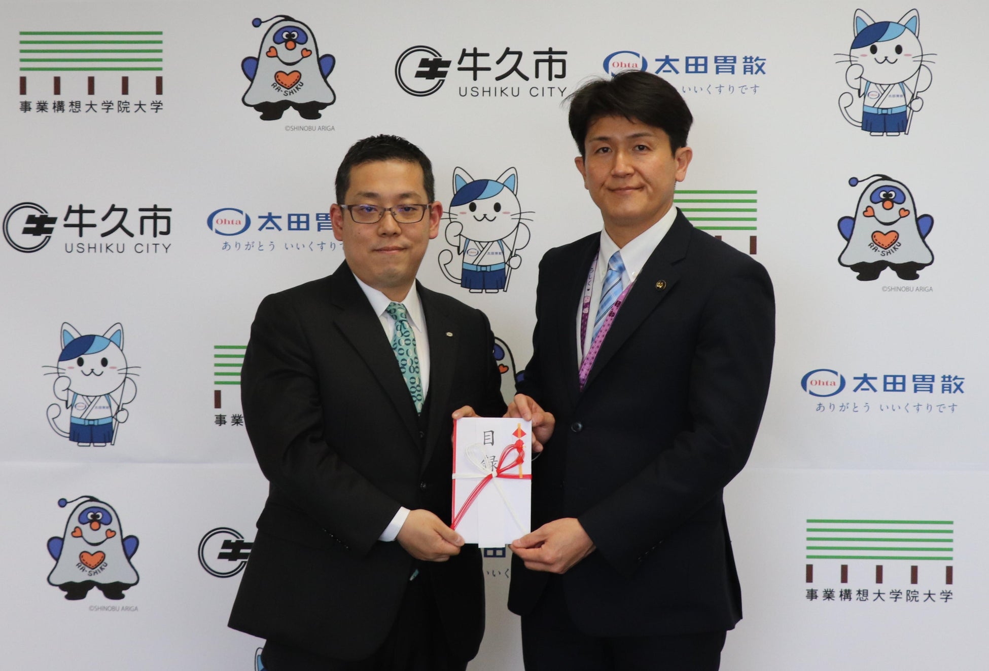 本協定に基づき、株式会社太田胃散から牛久市へ企業版ふるさと納税(地方創生応援税制)の寄附が行なわれており、「牛久市みらい共創プロジェクト研究」は寄附金を財源に運営します。企業版ふるさと納税(地方創生応援税制)とは、地方自治体による地方創生事業に対して、民間企業からの寄附を活用する制度です。