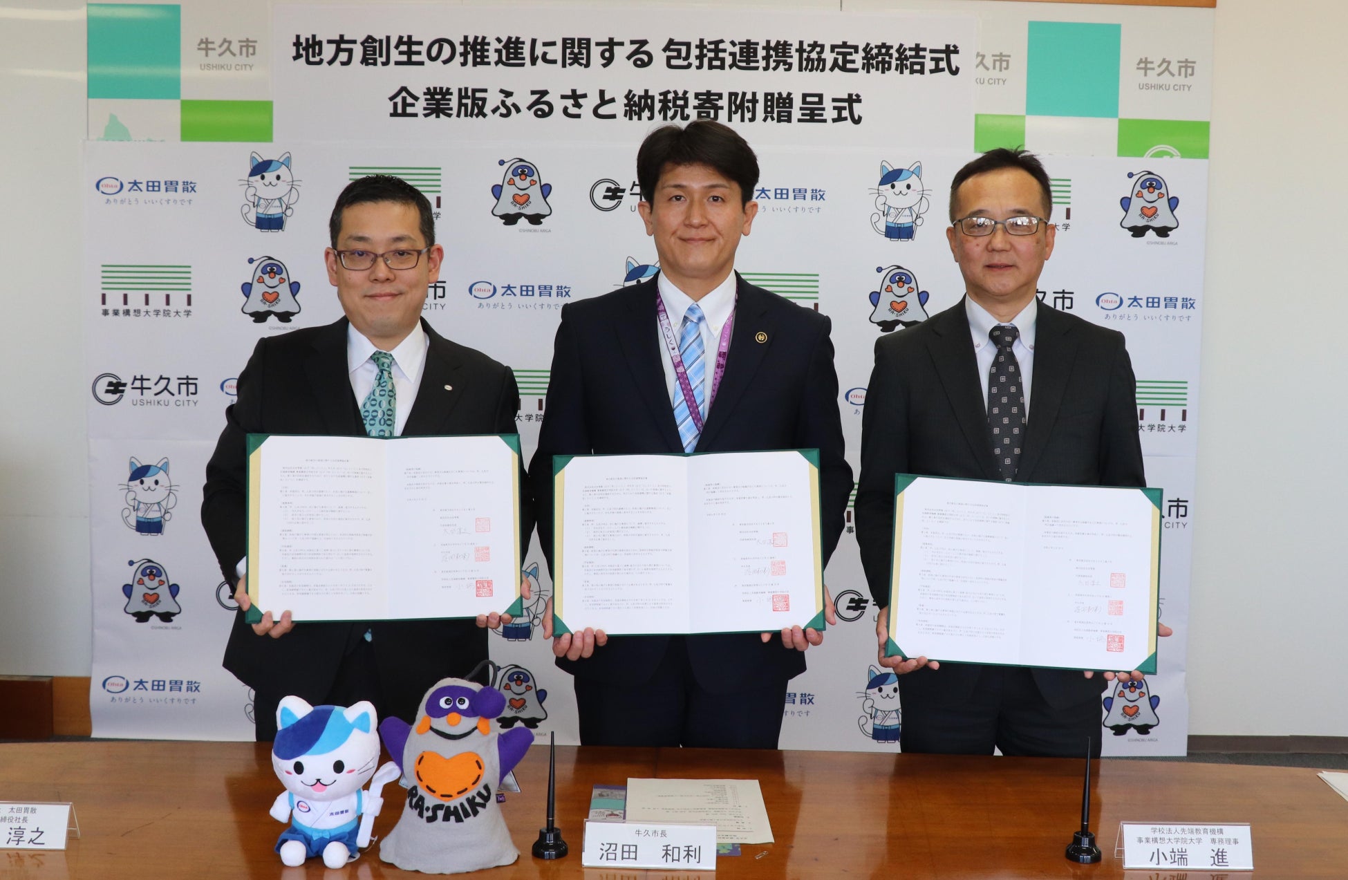 ※1 牛久市、株式会社太田胃散、事業構想大学院大学の三者は、牛久市域の未来を担う人材育成及び共創による新価値創出を目的に、「地方創生の推進に関する包括連携協定」を2024年2月26日付で締結しました。
