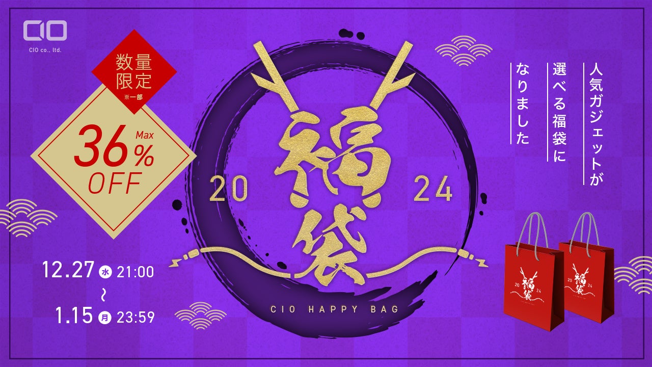 株式会社CIO(所在地:大阪府守口市)は、2023年12月27日(水)21:00~ 2023年1月15日(月)23:59まで「CIO 人気ガジェットが選べる福袋2024」を『CIO公式サイト』にて数量限定で販売致します。