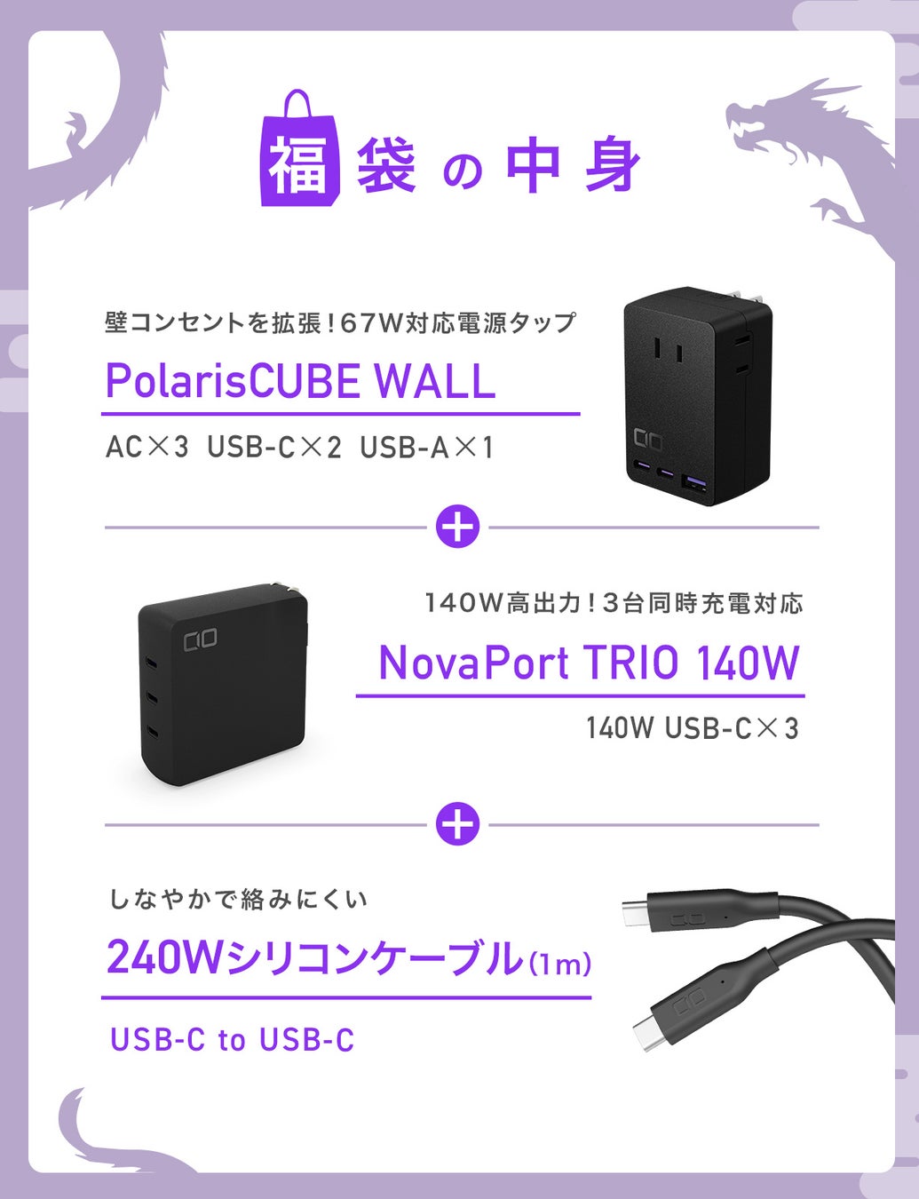 モバイルバッテリー「SMARTCOBY」、GaN対応急速充電器「NovaPort」などを展開する株式会社CIOは、今年も超お得な「CIO 人気ガジェットが選べる福袋2024」をCIO公式サイトにて販売いたします。