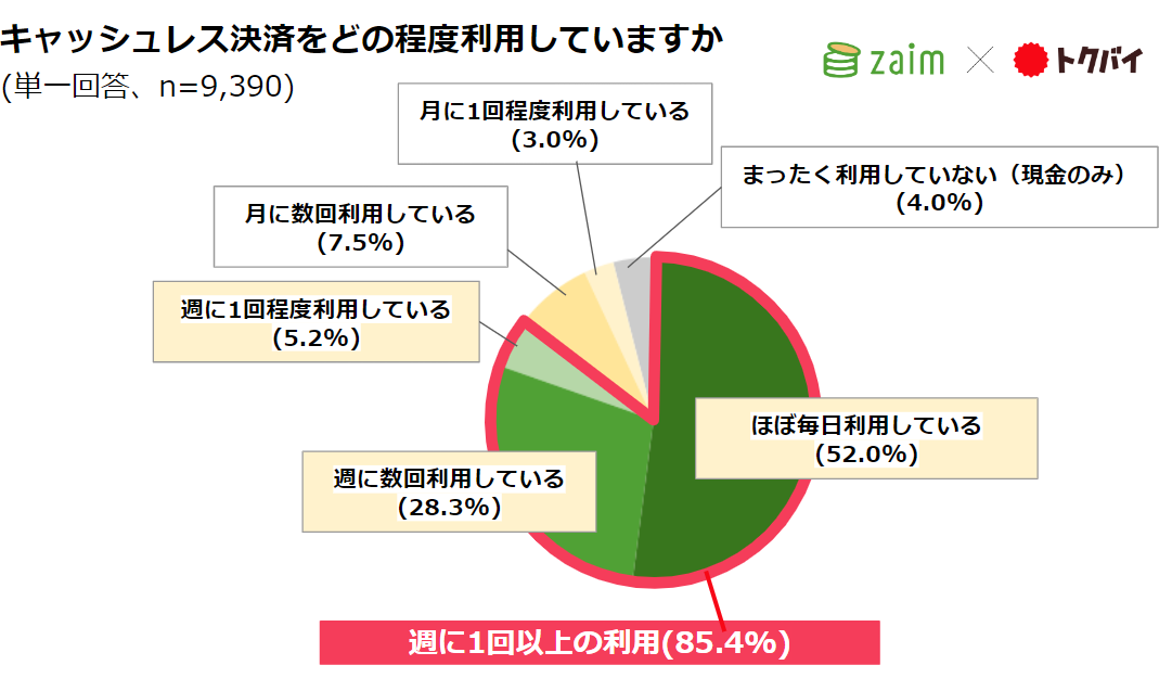 ~半数以上が「ほぼ毎日キャッシュレス決済を利用」、キャッシュレス決済方法トップ3は「クレジットカード」「QRコード」「電子マネー」~