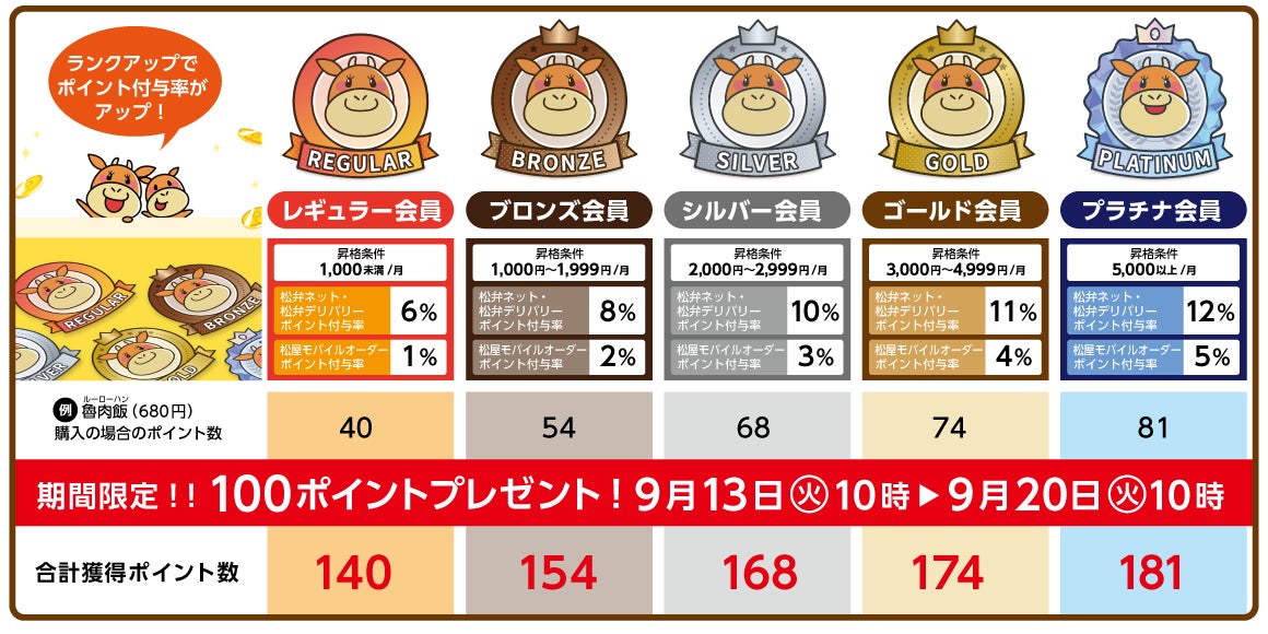 | ▶▶おトク情報をチェック ◎お得なクーポン配信中!事前予約がお得な「松弁ネット」のご注文も!「松屋フーズ公式アプリ」 各種ブランドのご案内やモバイルオーダー、松弁ネットのご案内。さらにお得なクーポンを配信しています。 URL:https://www.matsuyafoods.co.jp/mobile/ ◎豊富なキャッシュレス決済に対応 キャッシュレス決済はポイント還元がお得。ご利用方法はとっても簡単! URL:https://www.matsuyafoods.co.jp/qr_payment/ ◎店舗限定で開催中のキャンペーン情報はコチラ! テストメニュー販売店舗や、定食ライスおかわり無料店舗などをチェックできます。 URL: https://www.matsuyafoods.co.jp/matsuya/kobetsu/ ◎松屋【公式】Twitterアカウント @matsuya_foods 新メニューや各種キャンペーン、地域限定情報、松屋フーズが手がける色々なお店のご紹介などなど、盛りだくさんのエピソードを気まぐれに発信。 |