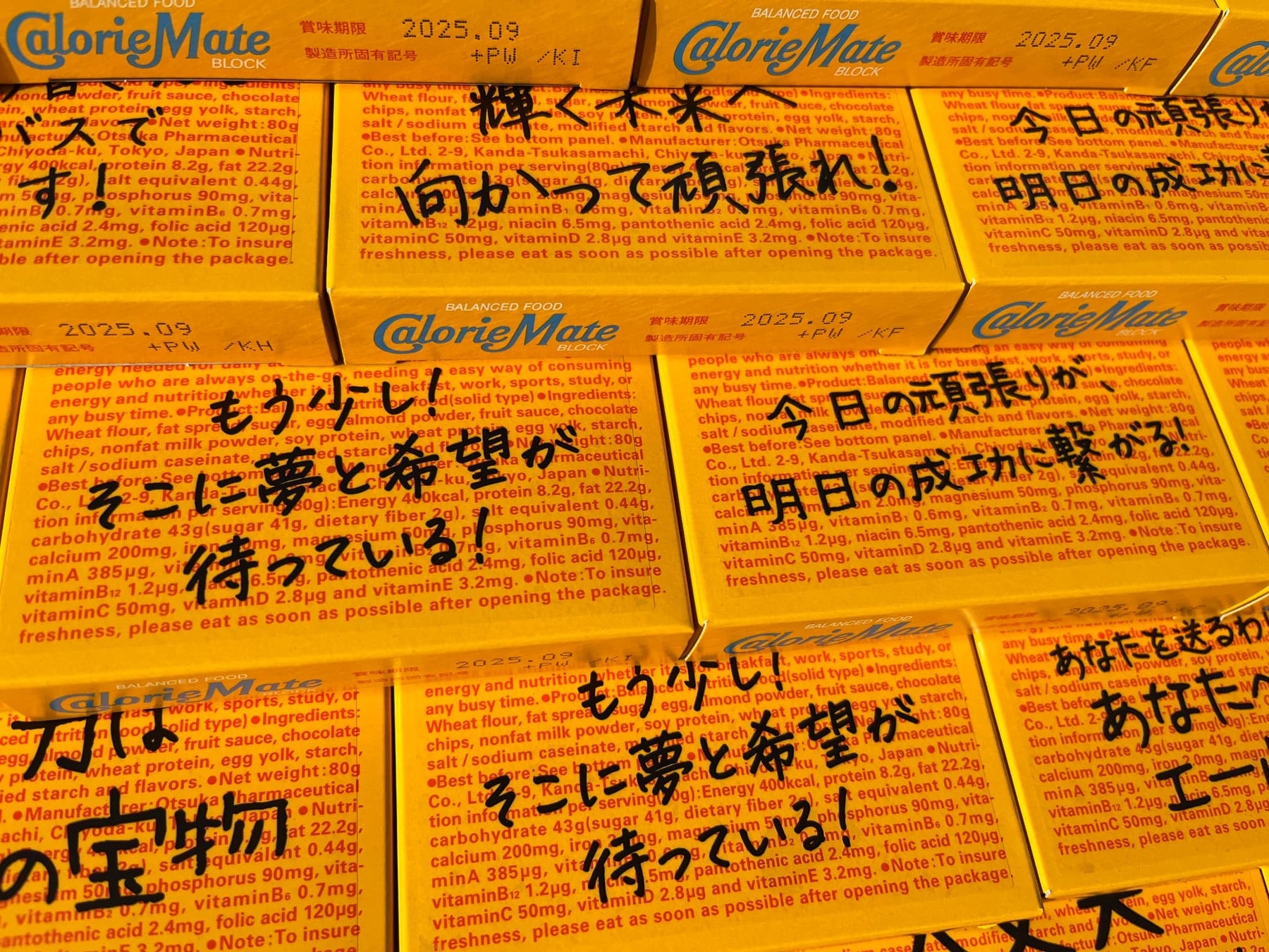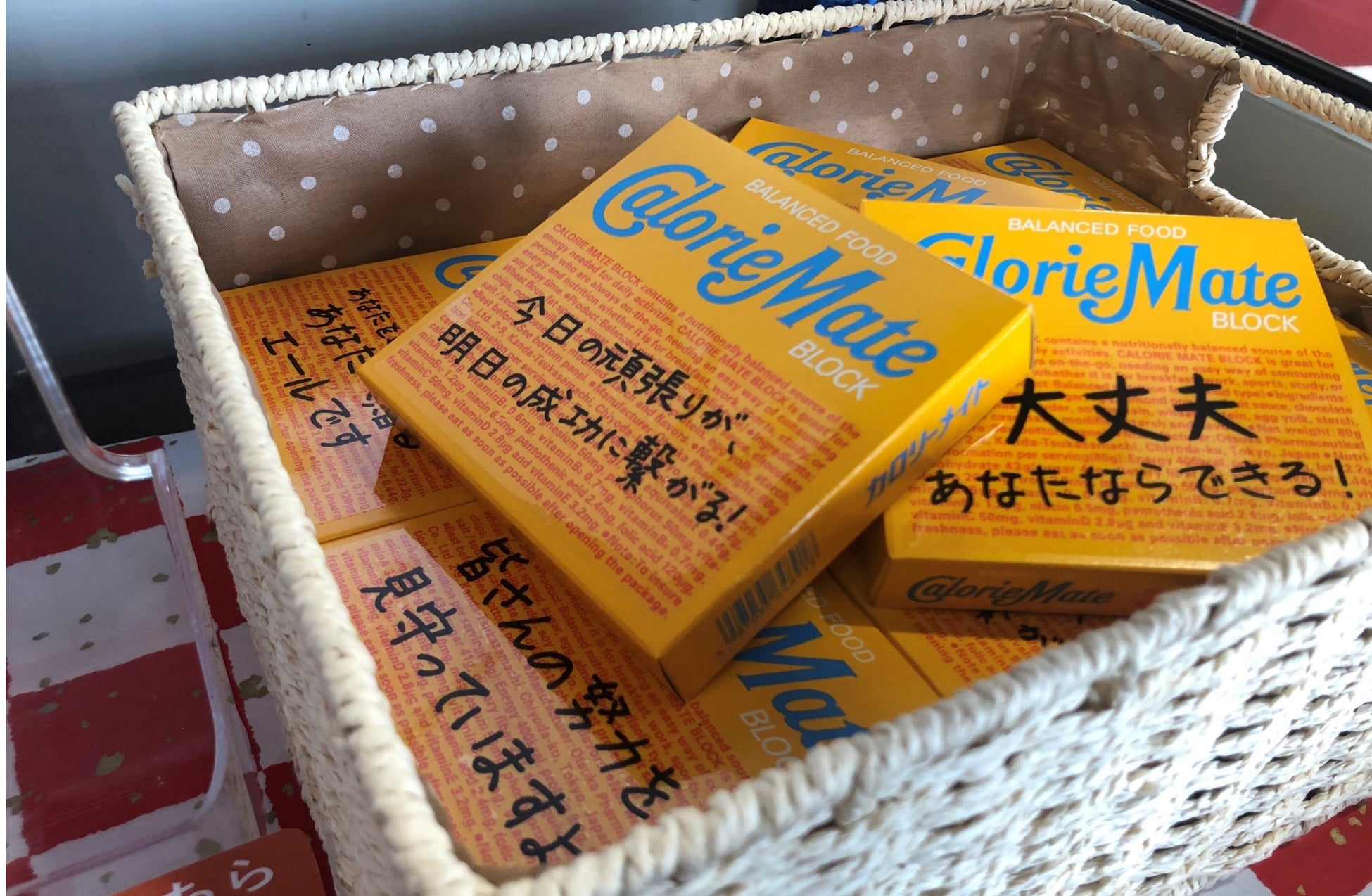 2.バス社員のメッセージ付きカロリーメイトを沿線学校の受験生にご提供