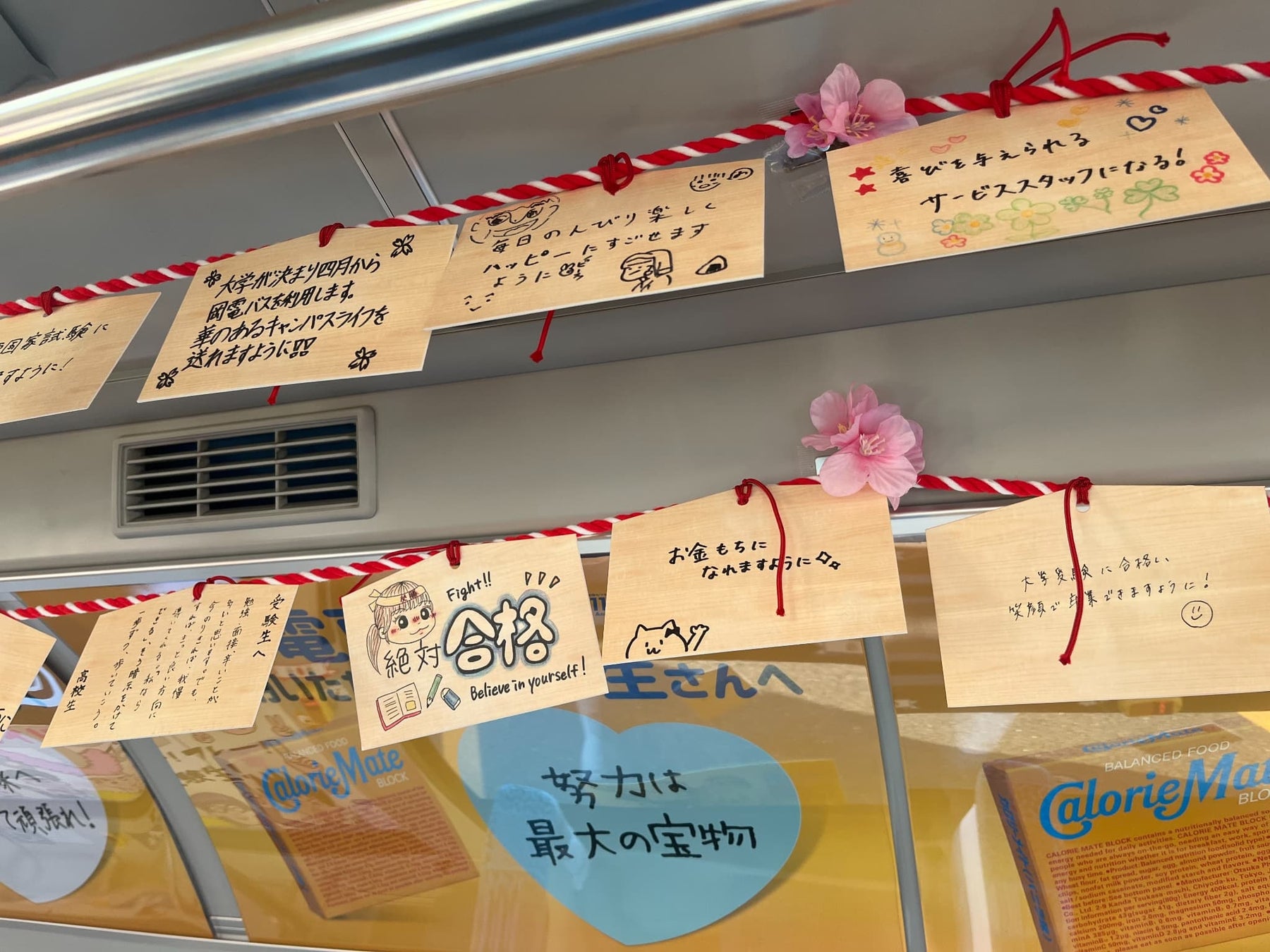 がんばる受験生の皆様に、努力が実り桜咲く春を祈願する思いを込めた企画バスです。