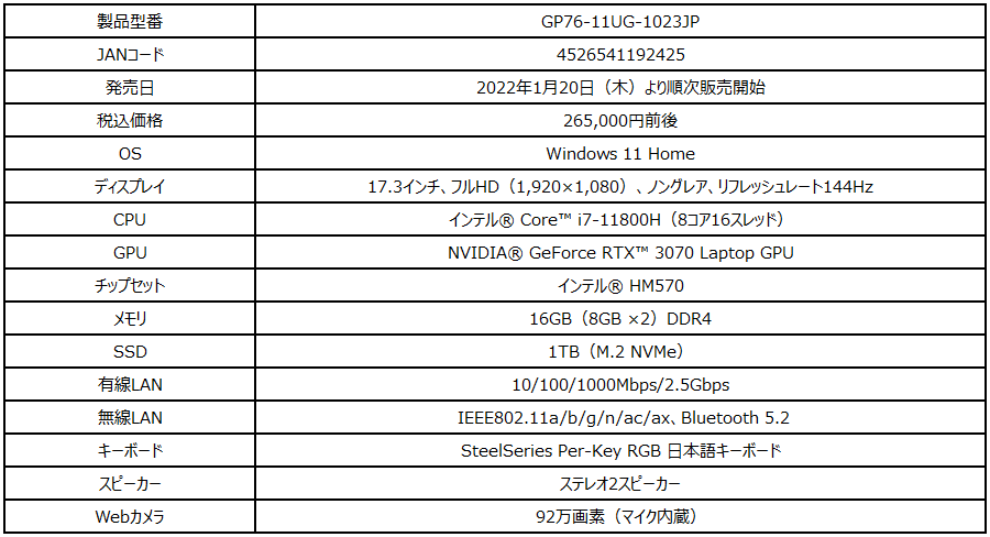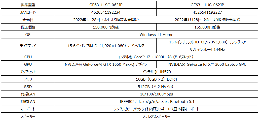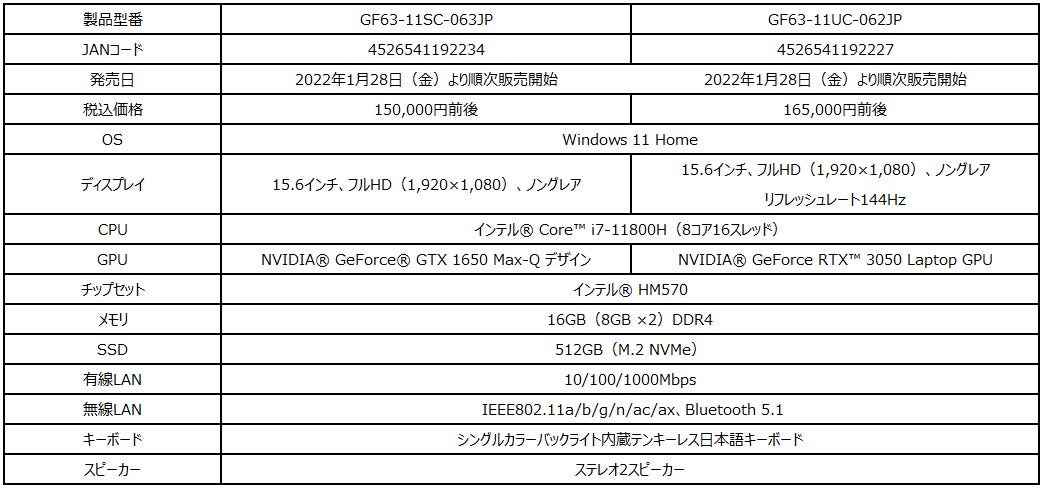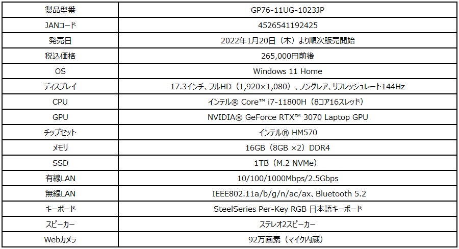この度、エムエスアイコンピュータージャパン株式会社は、2022年の新生活をゲーミングPCと一緒にスタートしたいというゲーマーを応援するべく、ご使用用途やご予算に合わせて選べるゲーミングノートPC4機種を店頭販売モデルとして2022年1月20日(木)より順次販売を開始いたします。