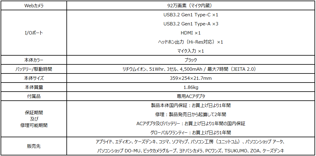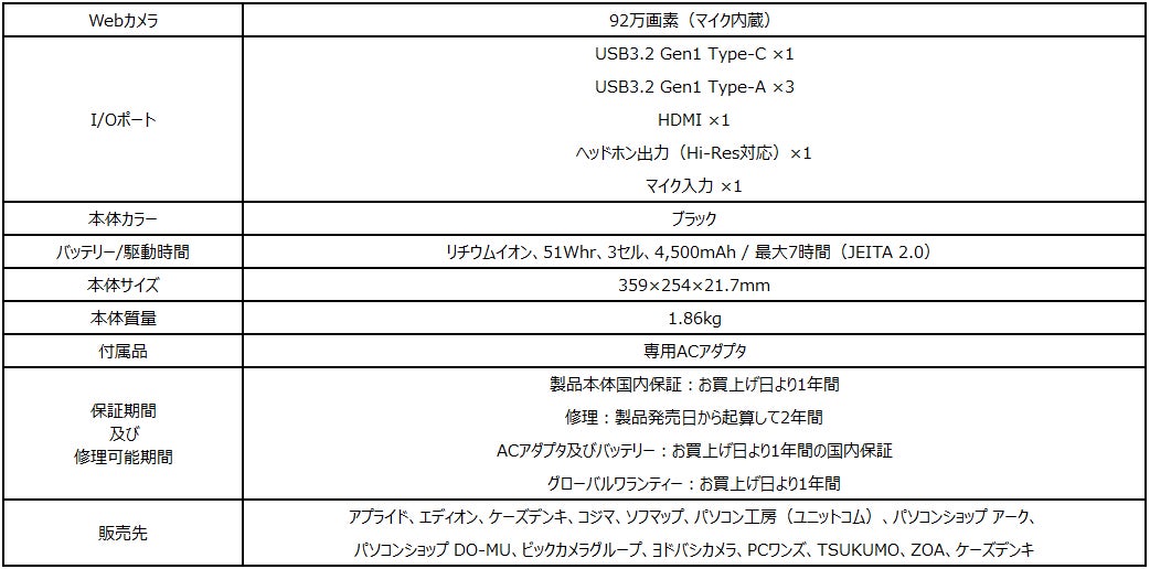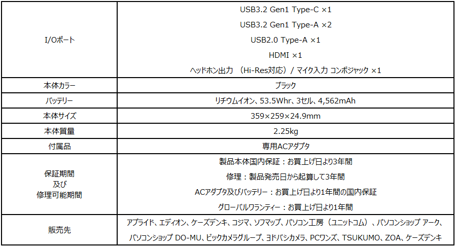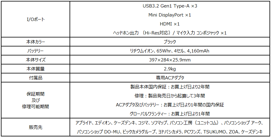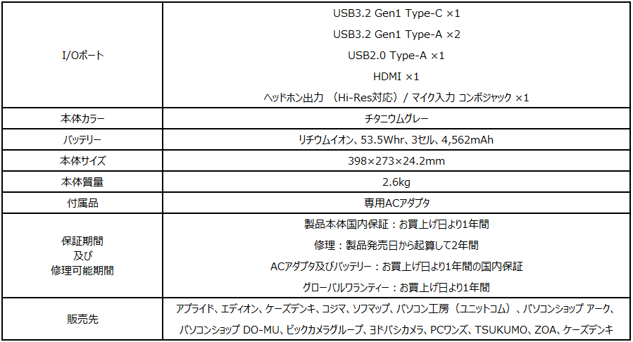 【2022年新生活店頭販売モデル・ゲーミングノートPC】