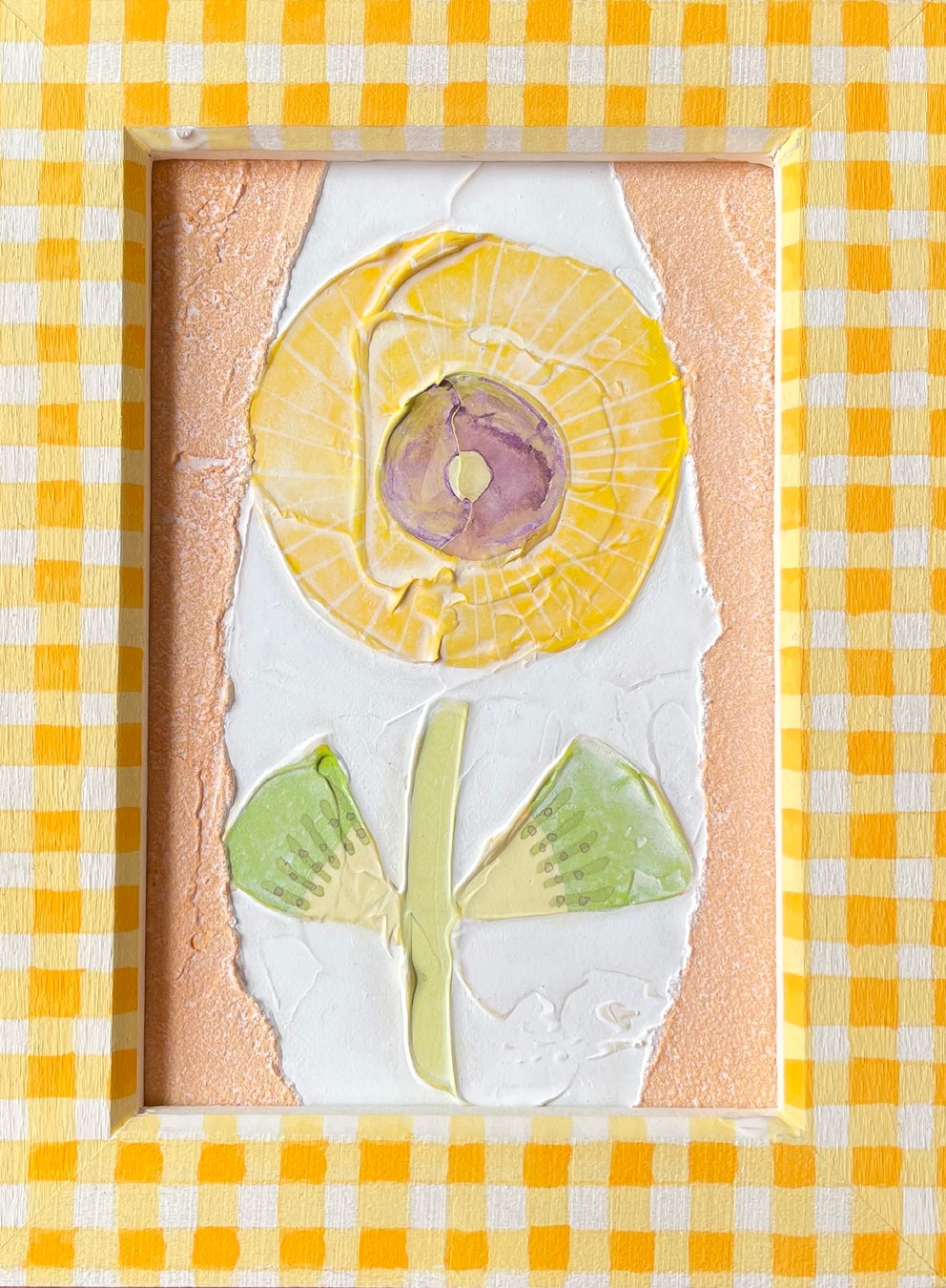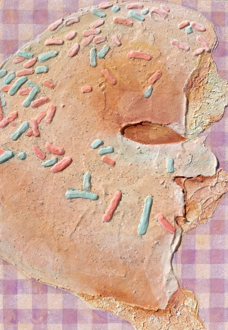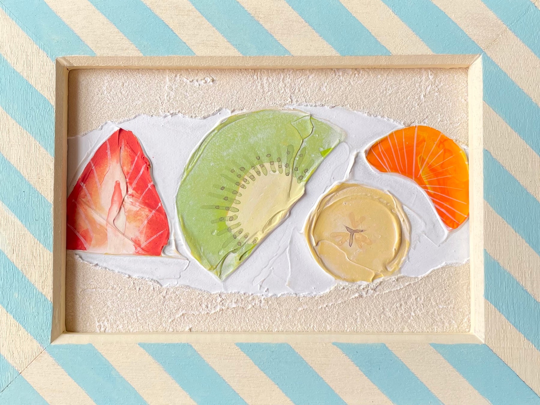 アクリルメディウム、日本画材、アクリルガッシュなどを用いて「食べものの質感」に着目した作品制作を行う。